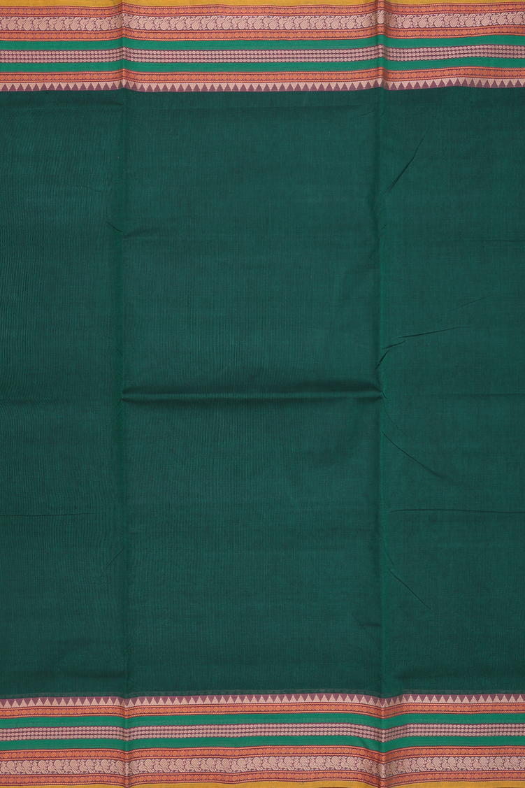 Nine Yards Cotton Saree Forest Green With Threadwork Border