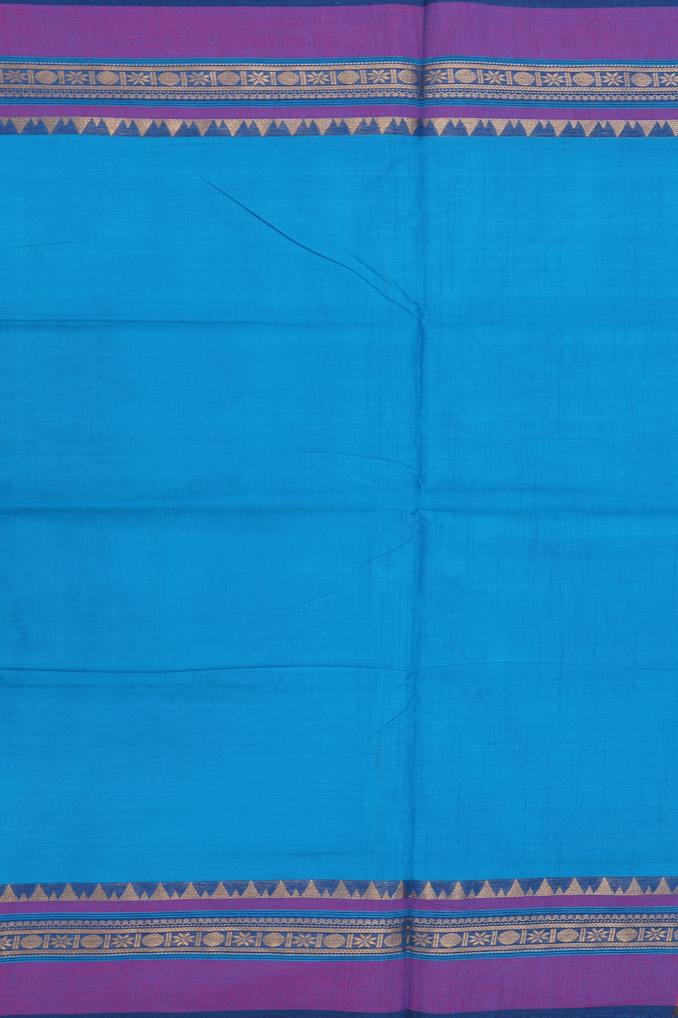 Nine Yards Cotton Saree In Cerulean Blue With Contrast Border