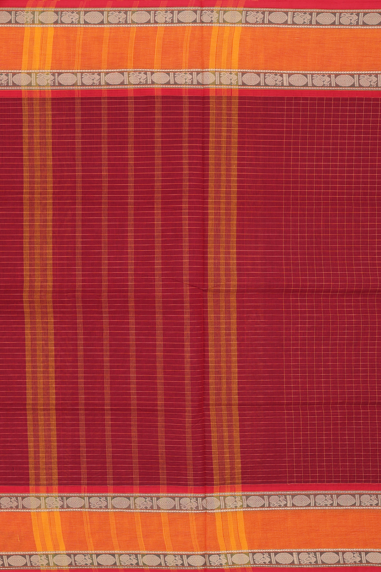 Nine Yards Cotton Saree In Crimson Red With Checks Design