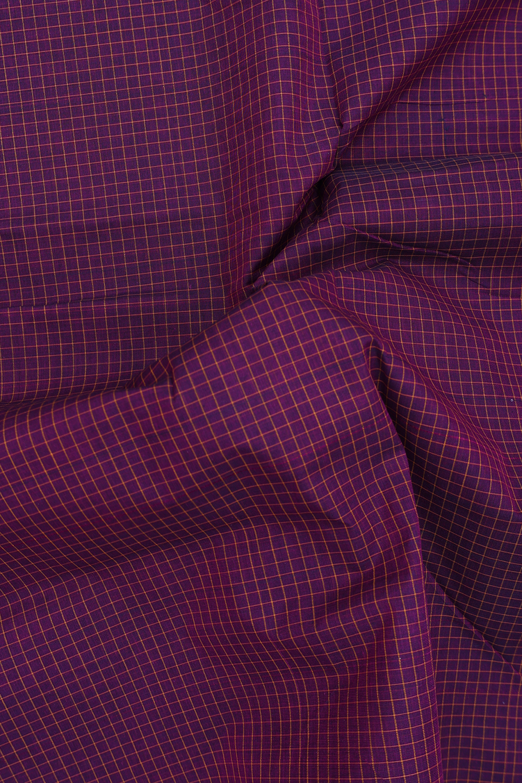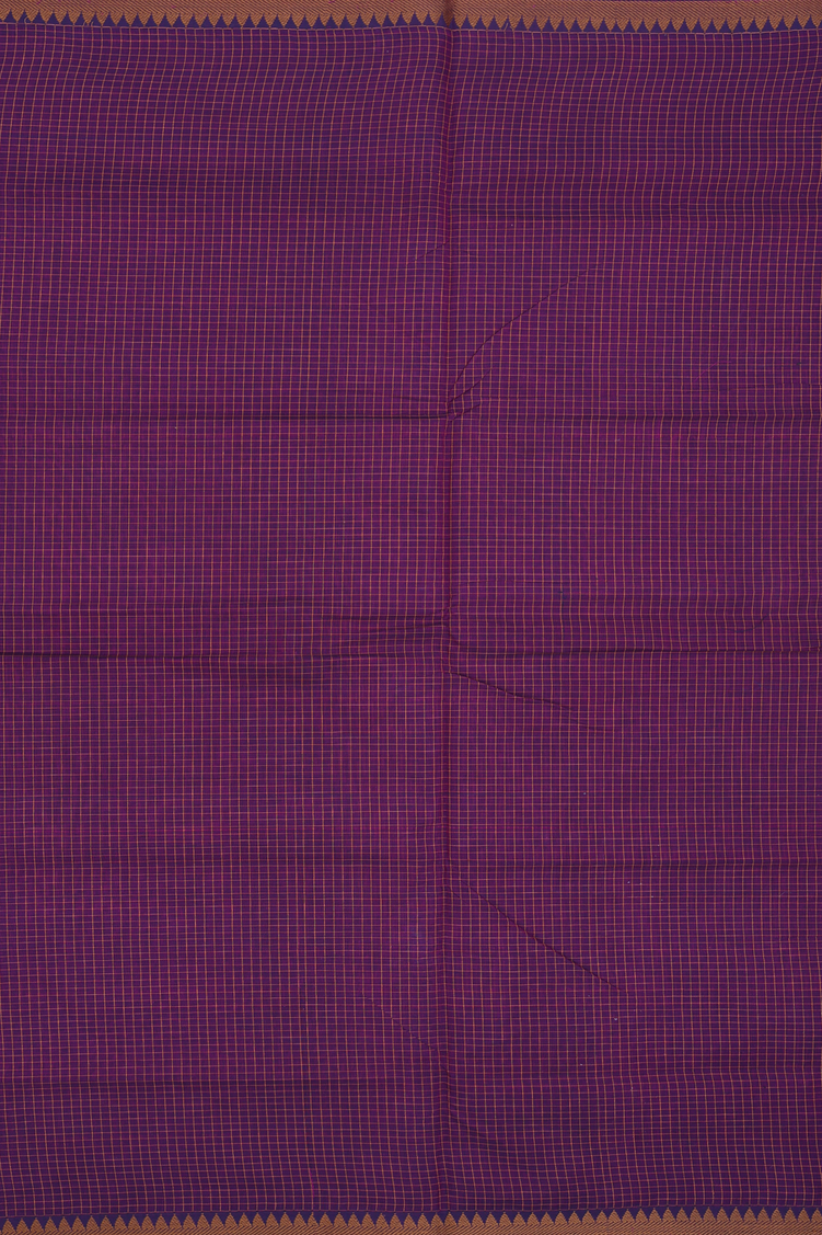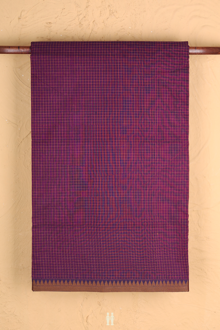 Nine Yards Cotton Saree In Grape Purple With Checks Design