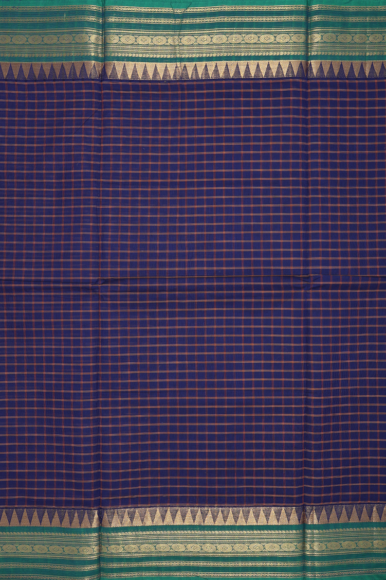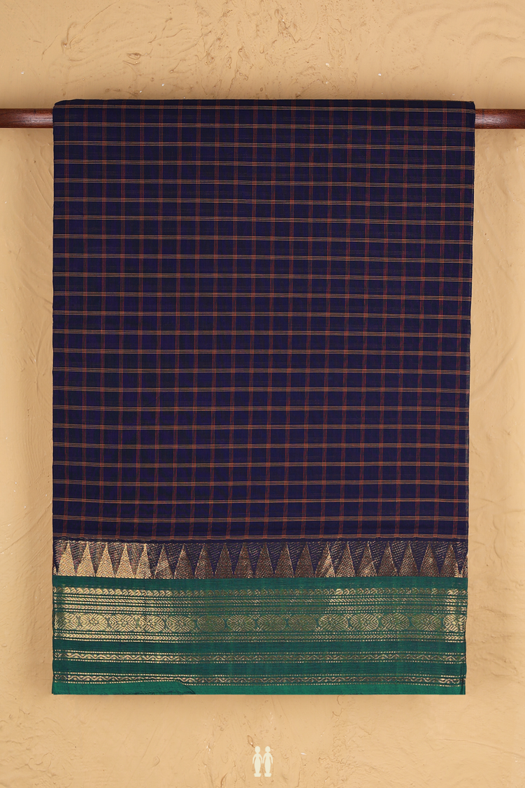 Nine Yards Cotton Saree In Navy Blue With Contrast Border