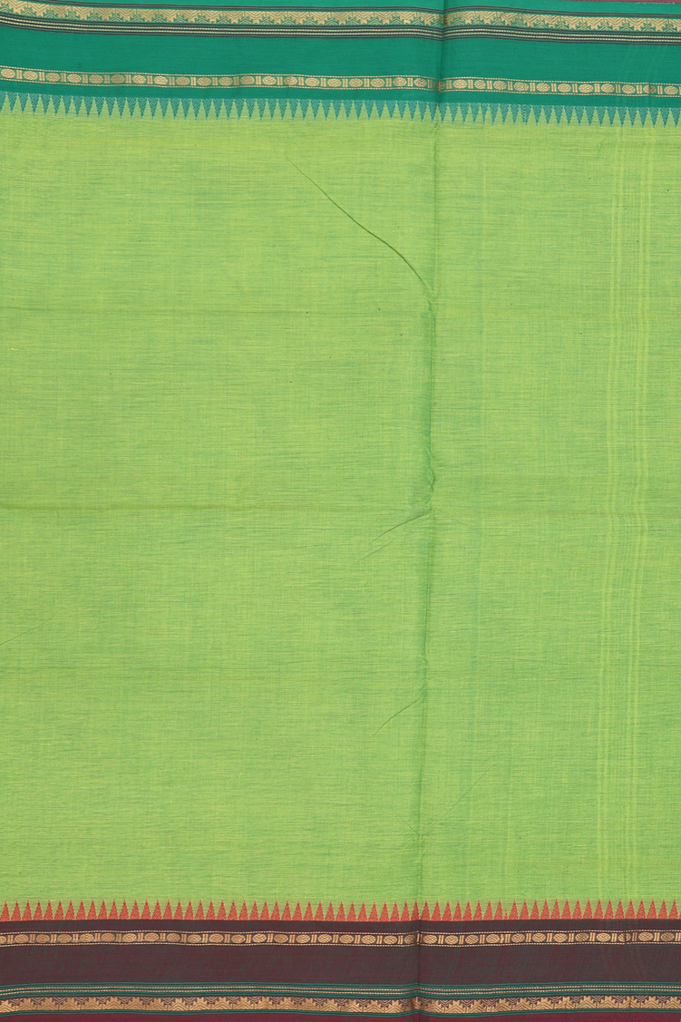 Nine Yards Cotton Saree In Parrot Green With Zari Border