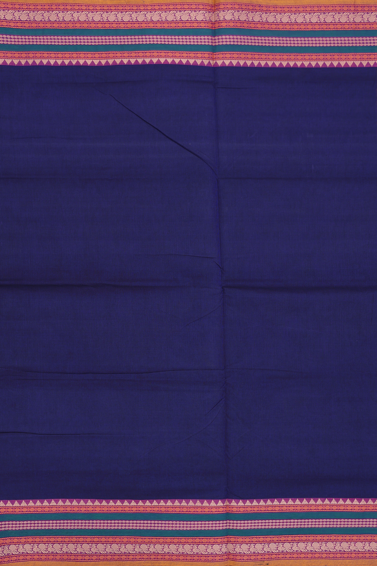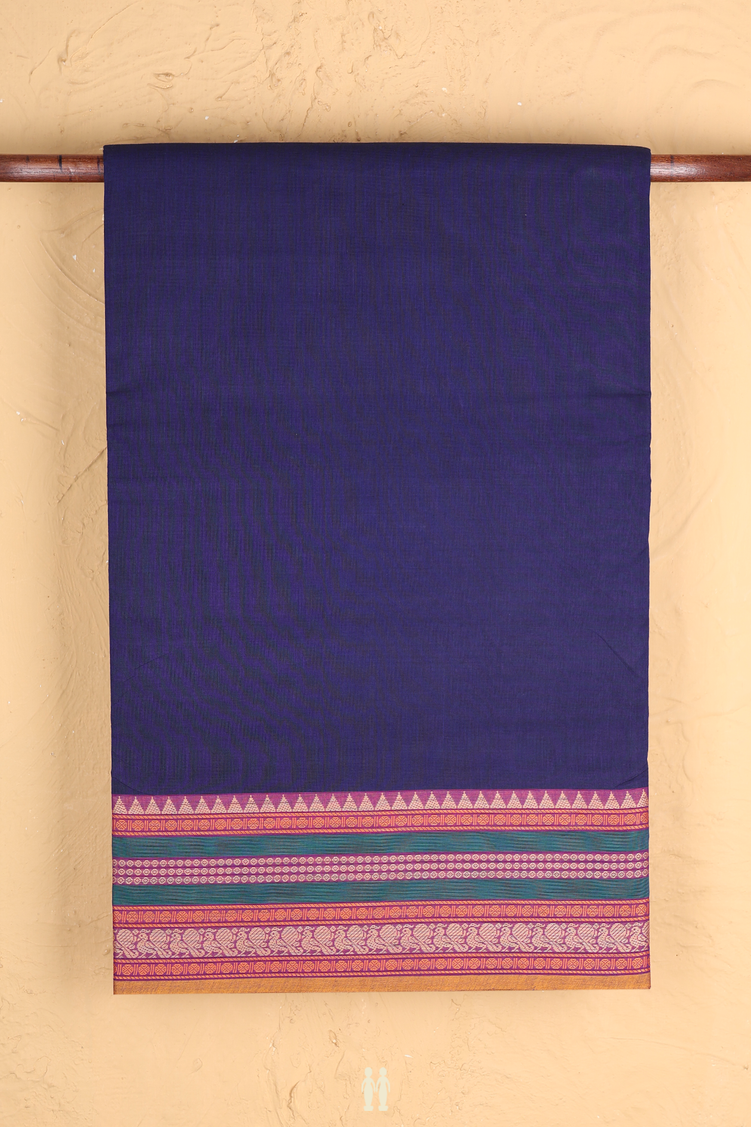 Nine Yards Cotton Saree Navy Blue With Threadwork Border