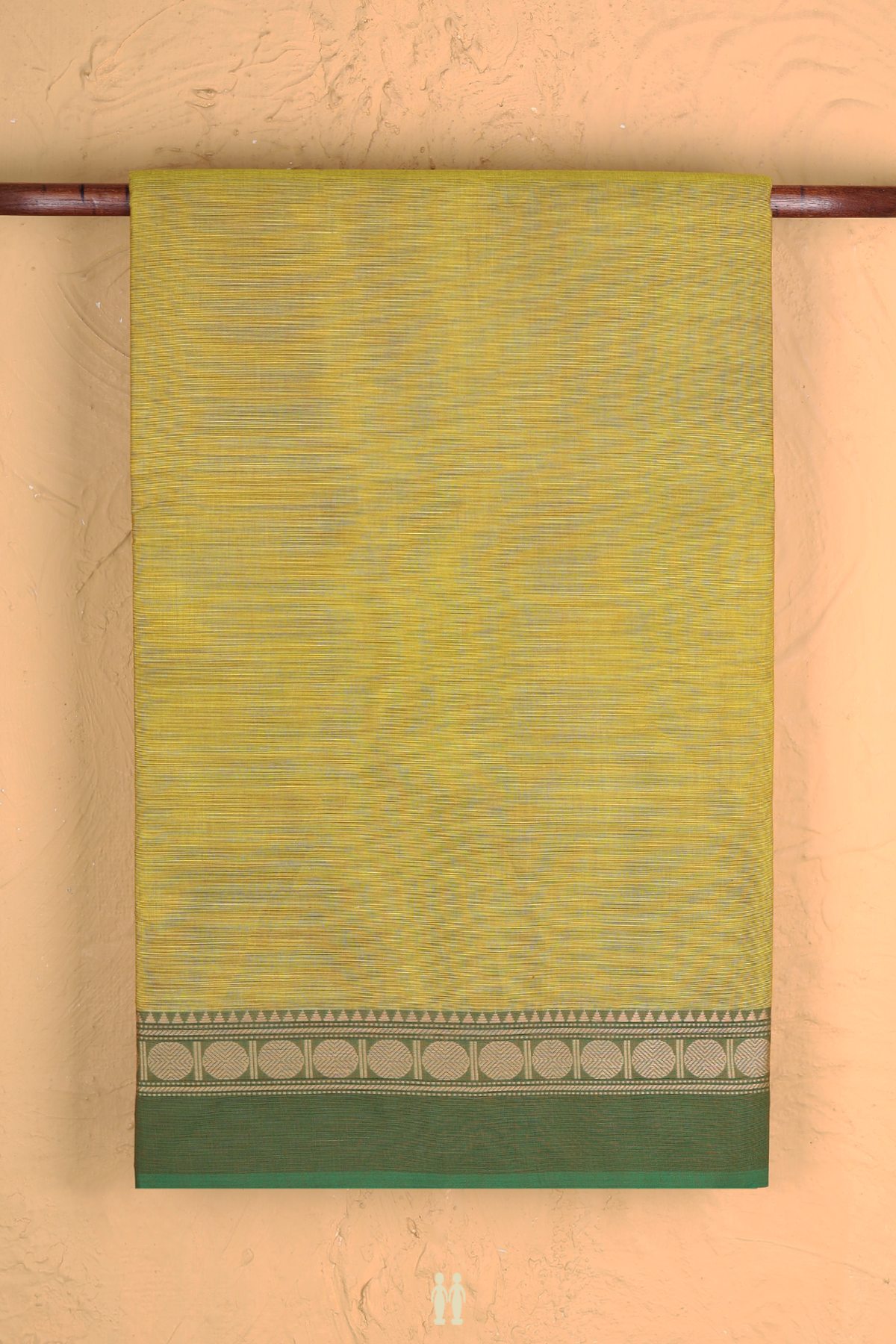 Nine Yards Cotton Saree Olive Yellow With Ganga Jamuna Border