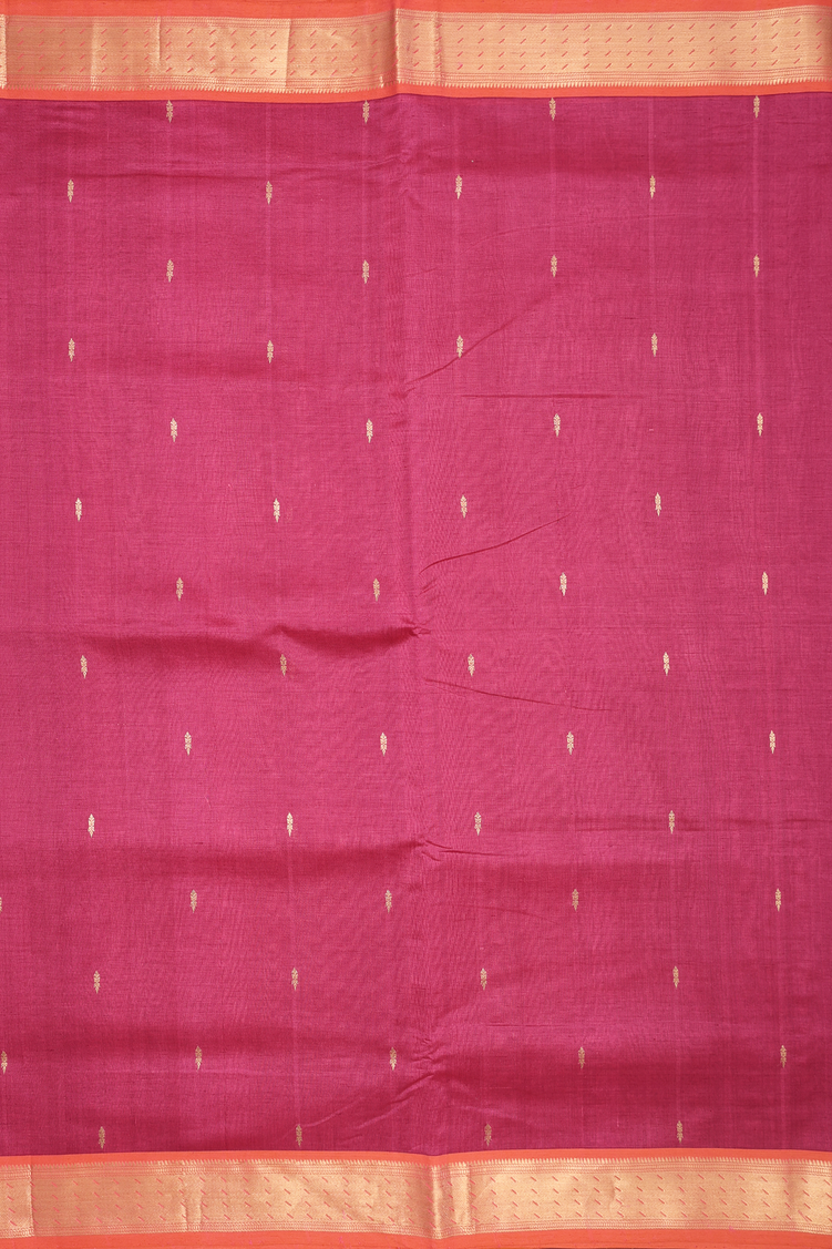 Nine Yards Silk Cotton Saree Hibiscus Red With Zari Buttas