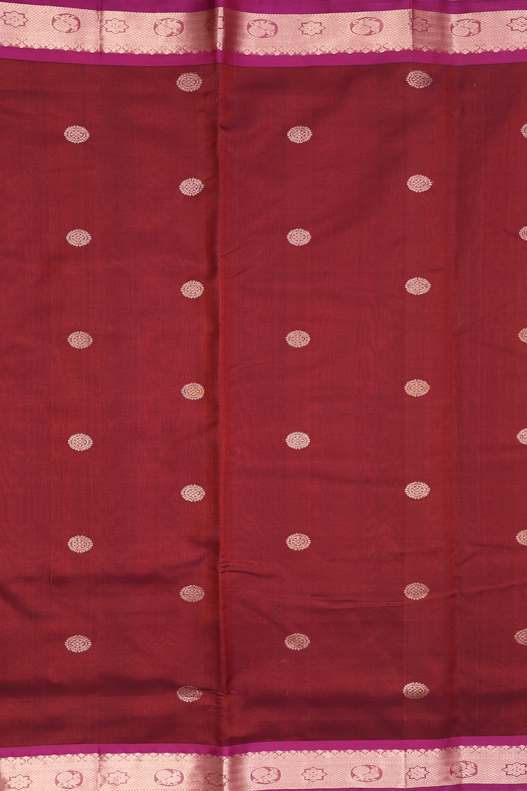 Nine Yards Silk Cotton Saree In Brown With Chakram Buttas