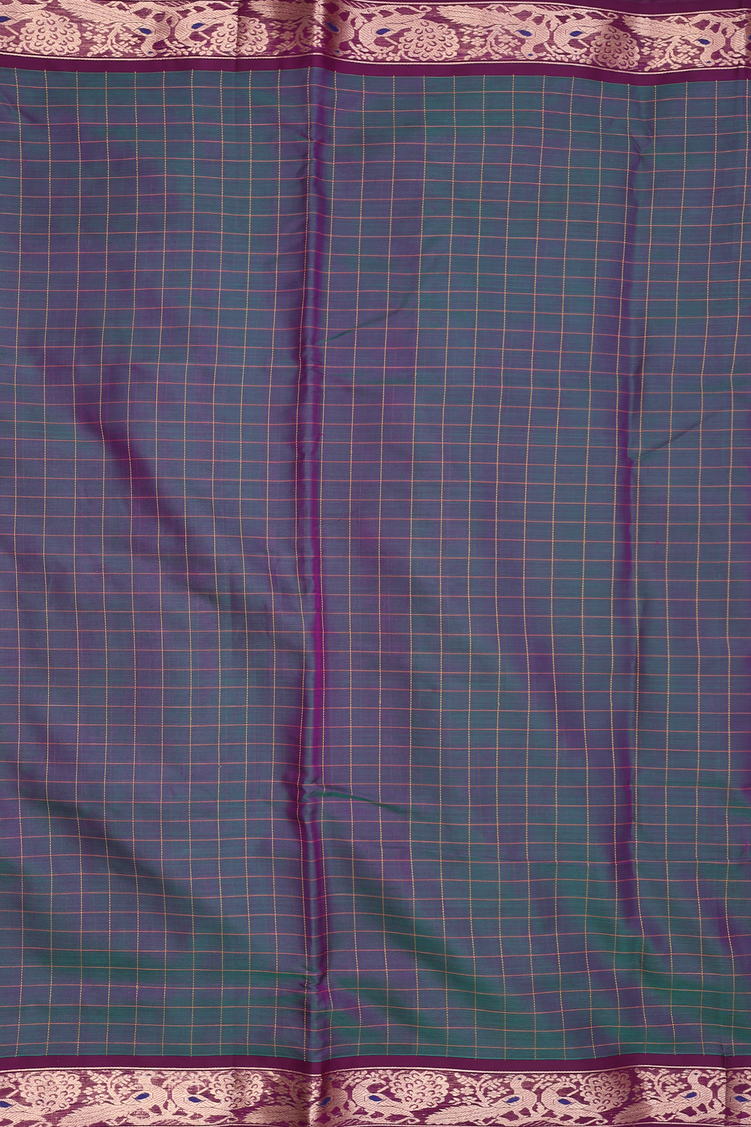 Nine Yards Silk Cotton Saree In Dual Tone With Checks Design