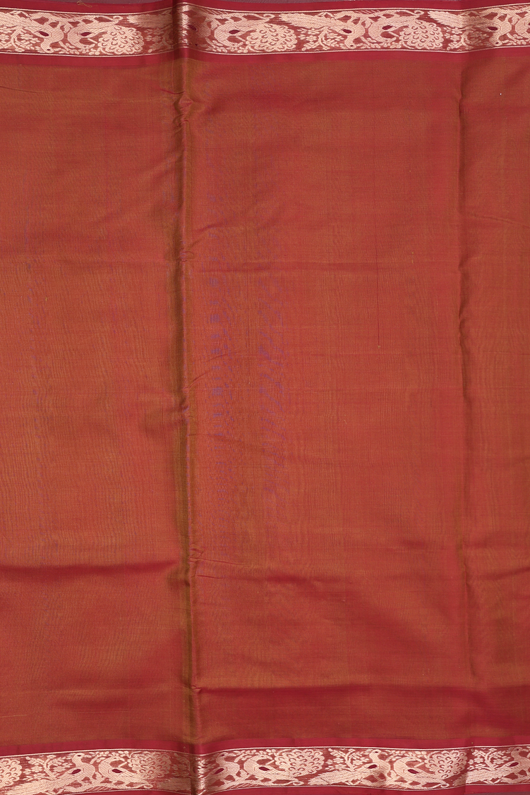 Nine Yards Silk Cotton Saree In Dual Tone With Peacock Border