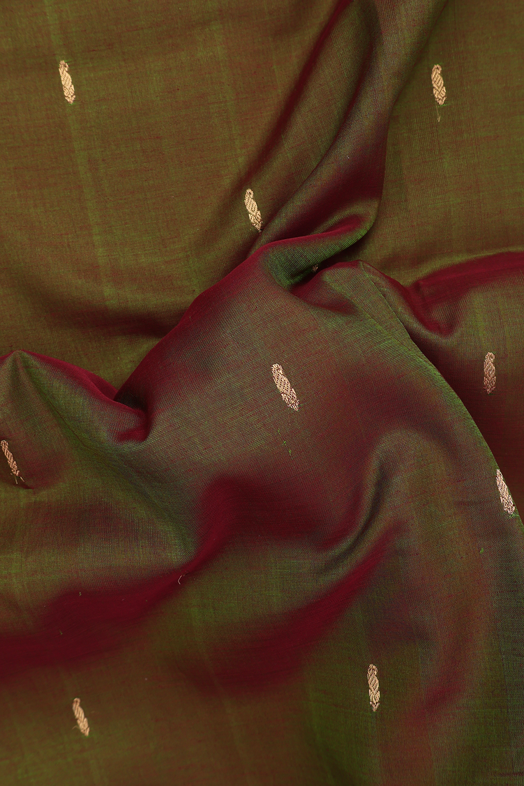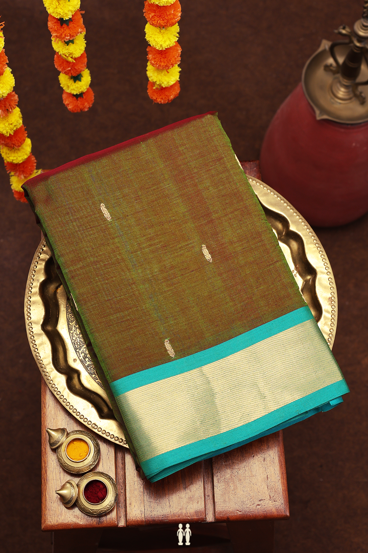 Nine Yards Silk Cotton Saree In Dual Tone With Zari Buttas