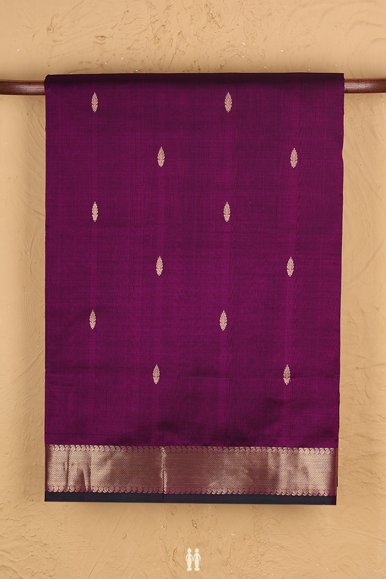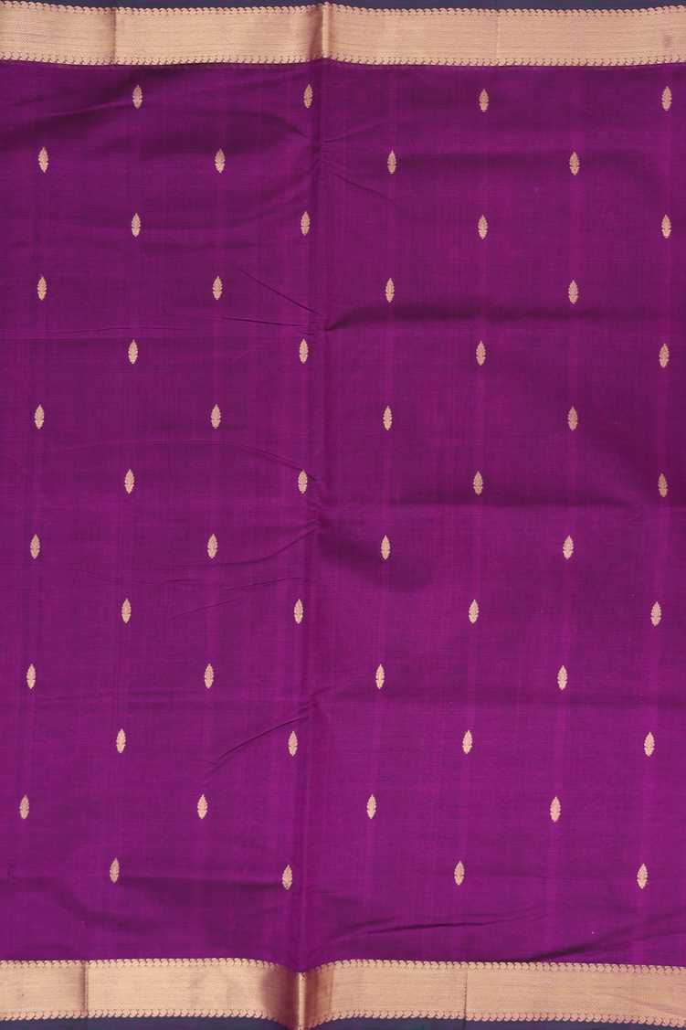 Nine Yards Silk Cotton Saree In Grape Purple With Zari Buttas