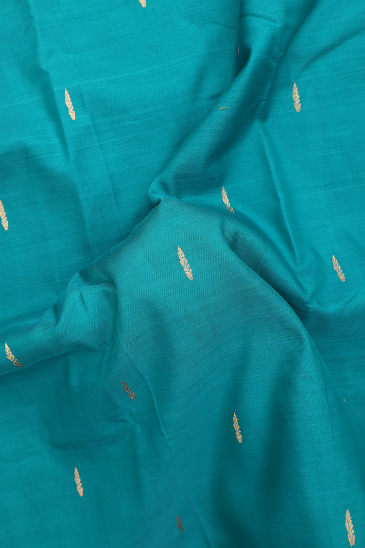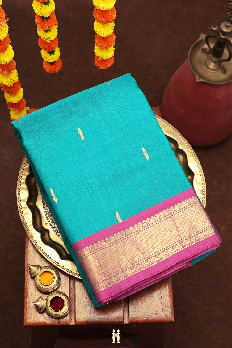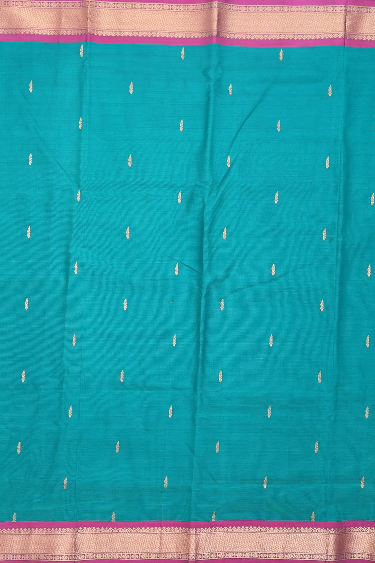 Nine Yards Silk Cotton Saree In Green With Zari Buttas
