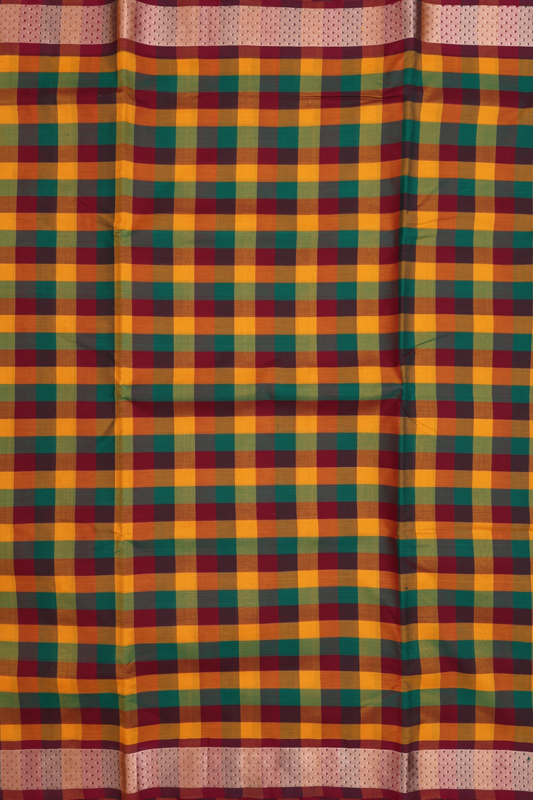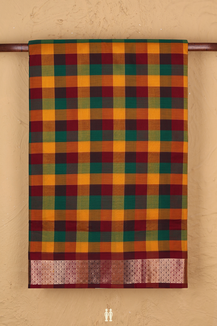 Nine Yards Silk Cotton Saree In Multicolor With Checks Design
