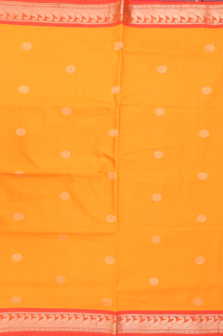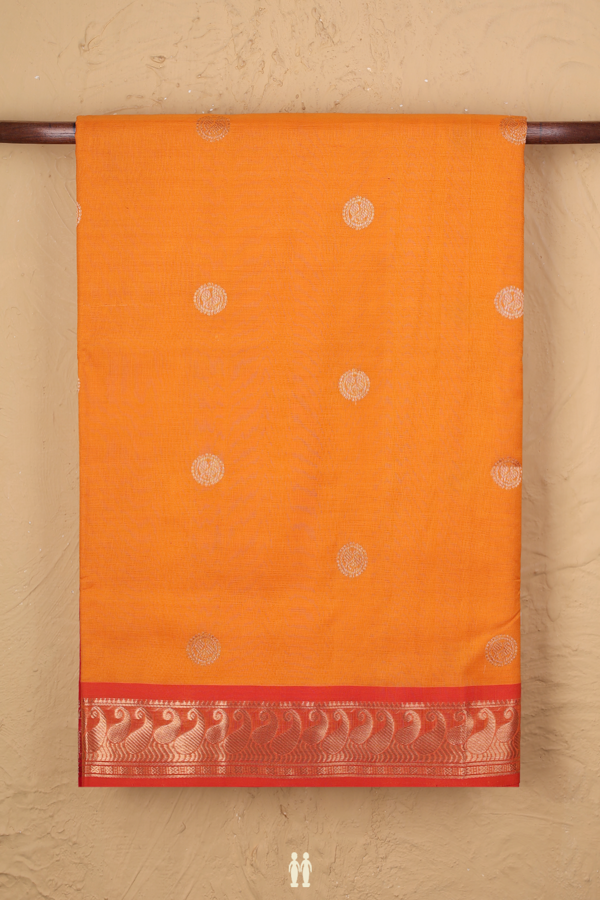 Nine Yards Silk Cotton Saree In Orange With Chakram Buttas