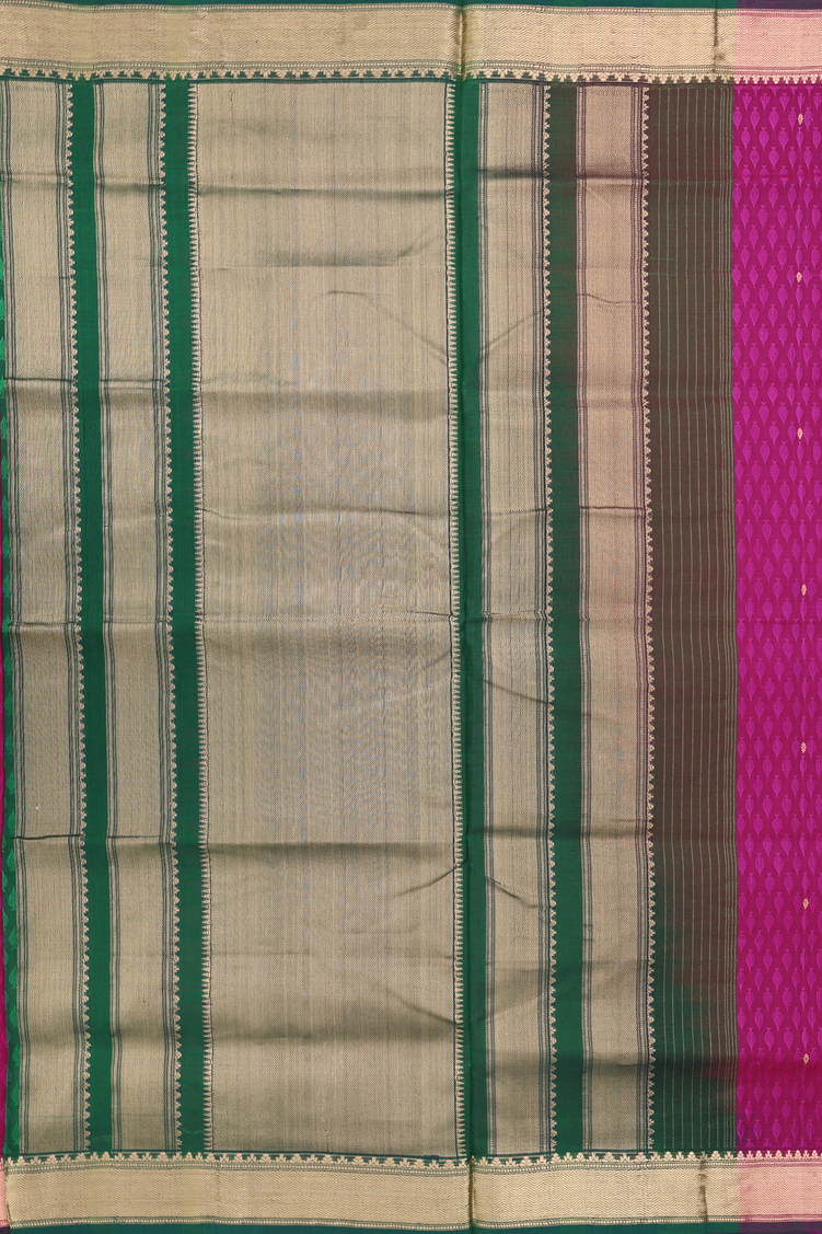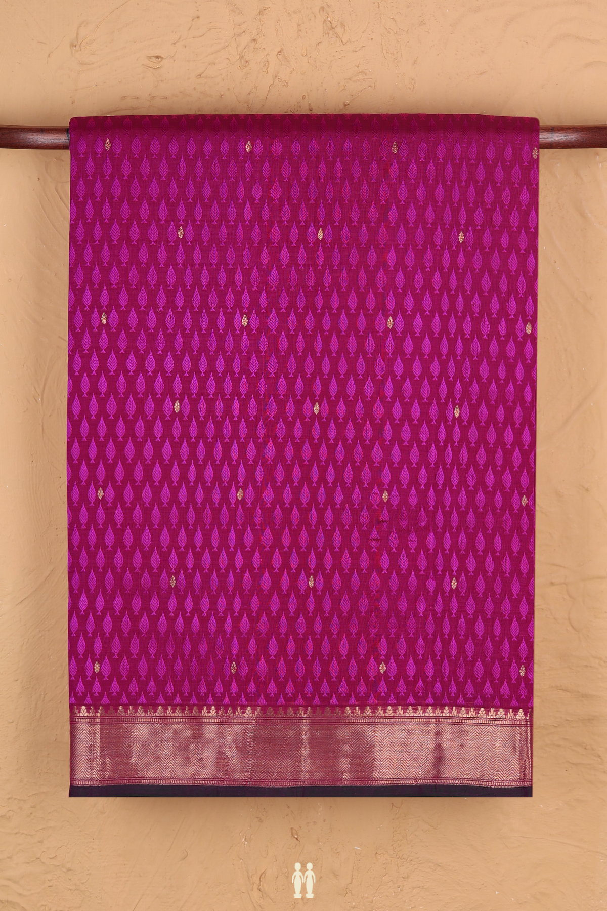 Nine Yards Silk Cotton Saree In Purple With Threadwork Design