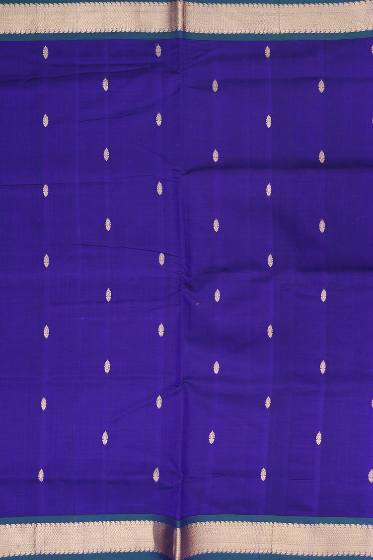 Nine Yards Silk Cotton Saree In Royal Blue With Zari Buttas