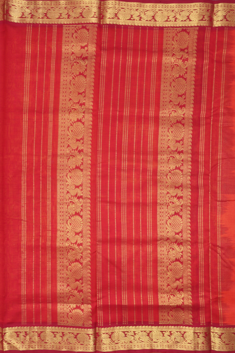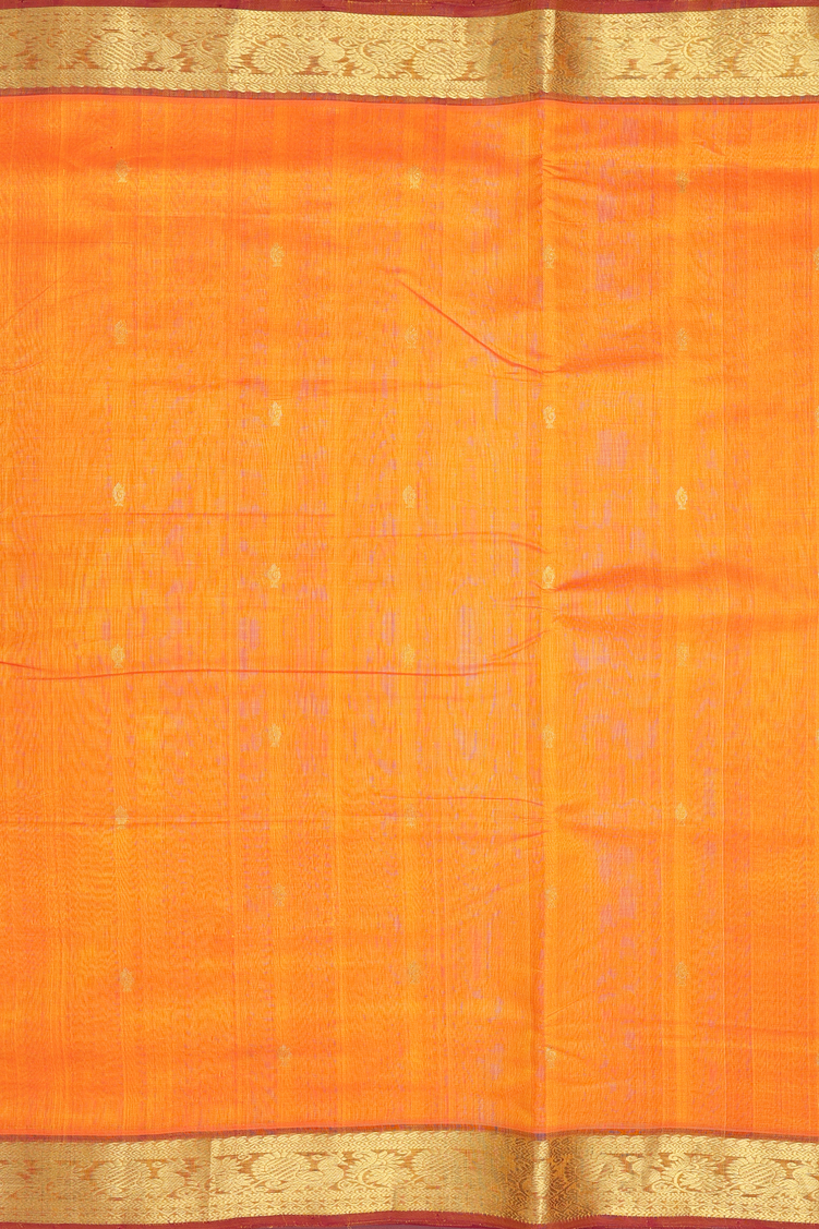 Nine Yards Silk Cotton Saree In Royal Orange With Zari Buttas