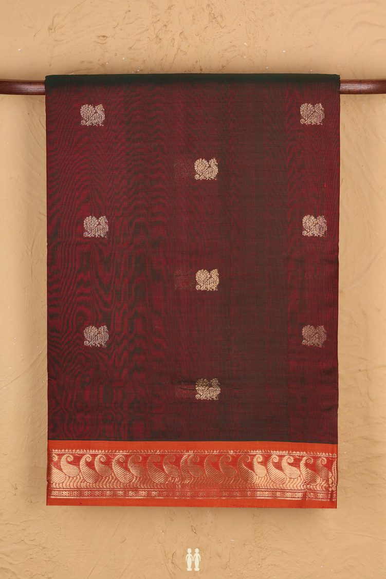 Nine Yards Silk Cotton Saree Manthulir With Peacock Buttas