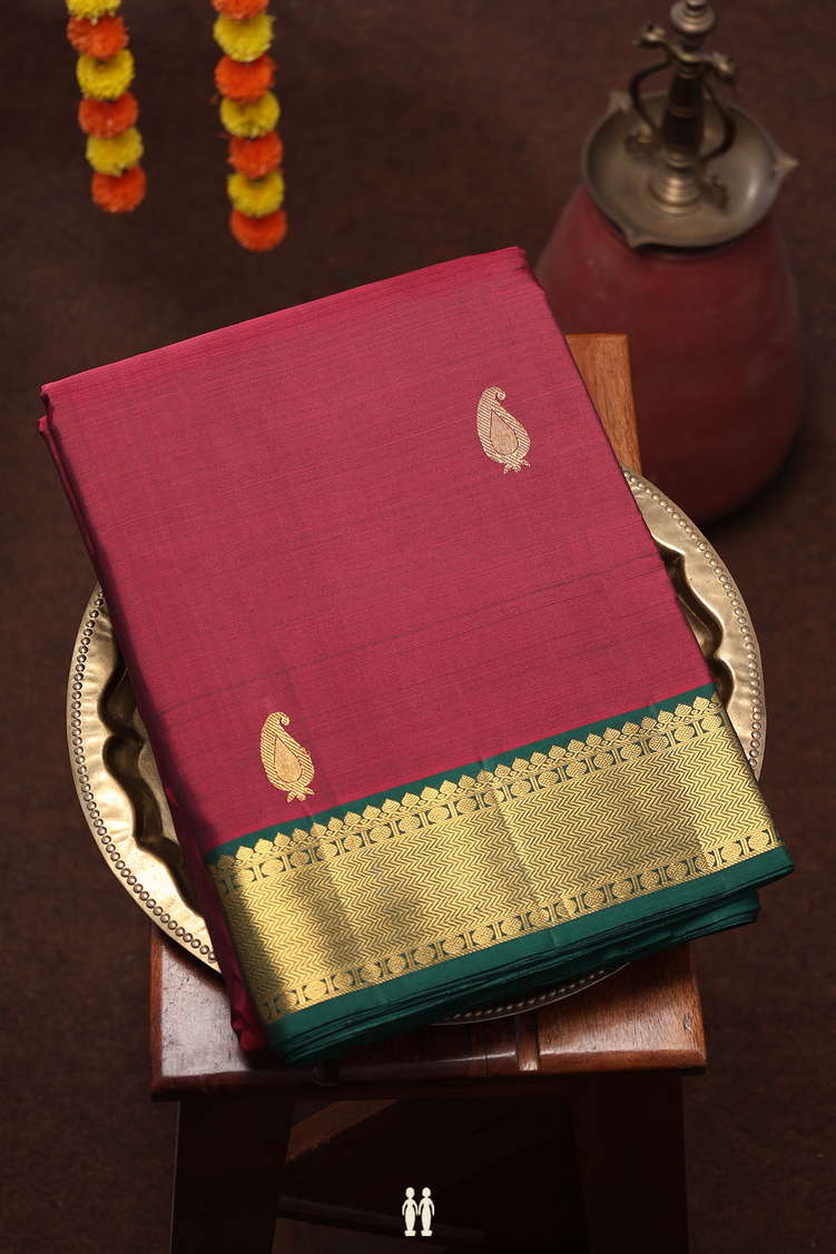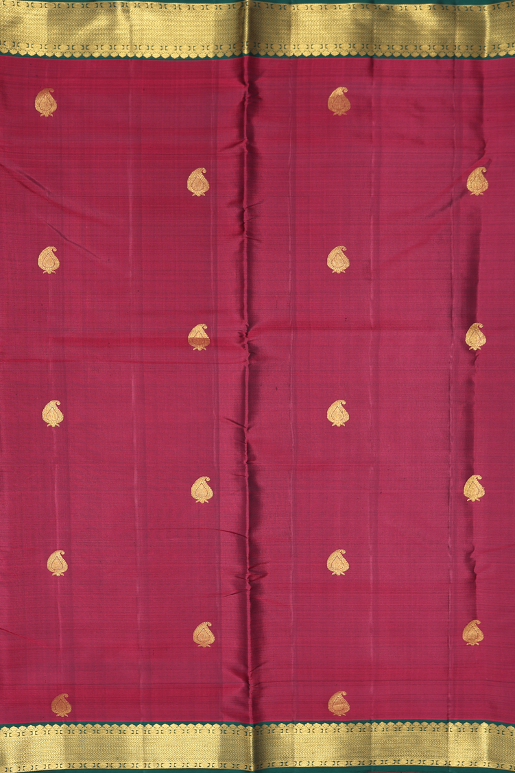 Nine Yards Silk Saree In Burgundy Red With Paisley Buttas
