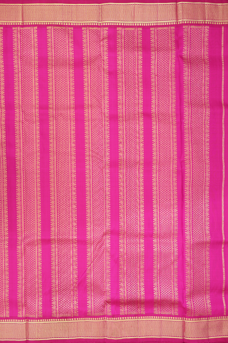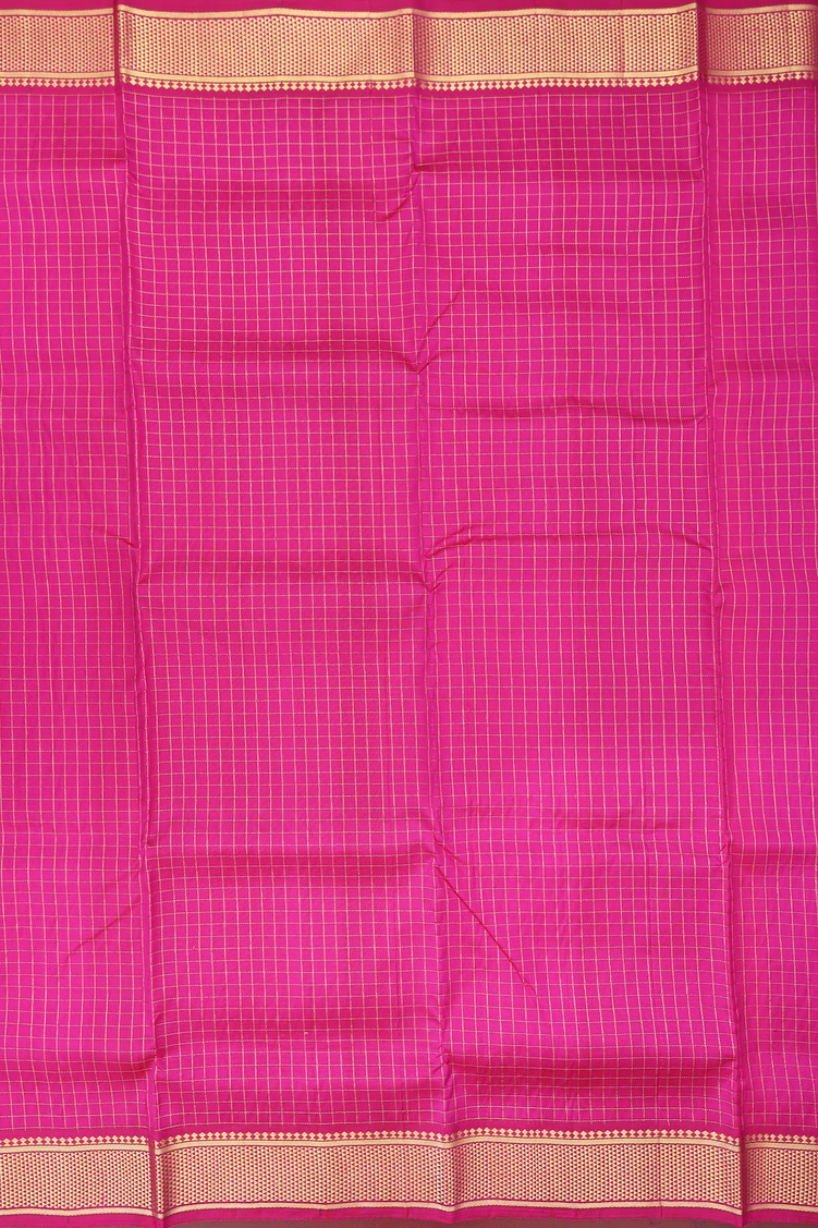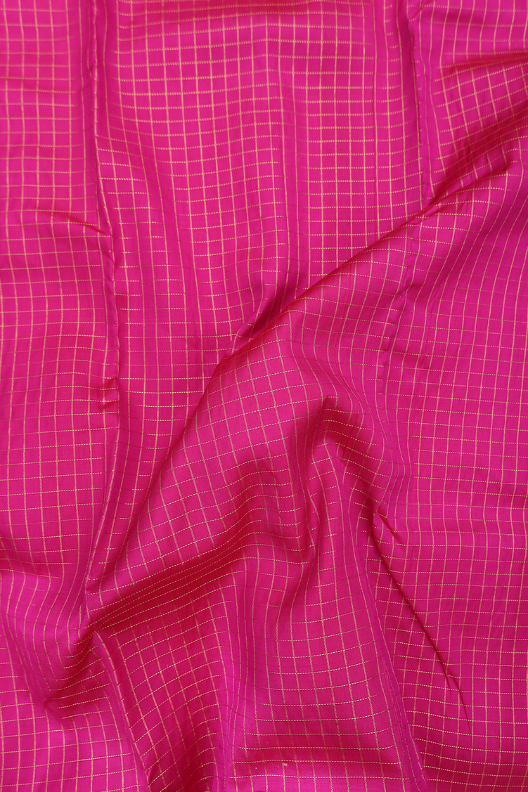 Drape yourself in timeless elegance with this exquisite nine-yard silk saree, rendered in a striking magenta hue adorned with a refined checks design. Crafted from premium silk, this saree offers a luxurious feel against the skin while maintaining its graceful drape. The geometric check pattern adds contemporary sophistication to the traditional silhouette, making it perfect for both festive occasions and refined gatherings.Â