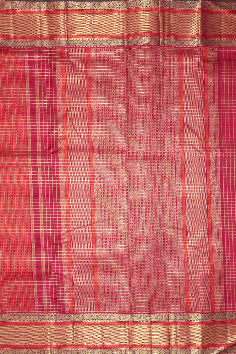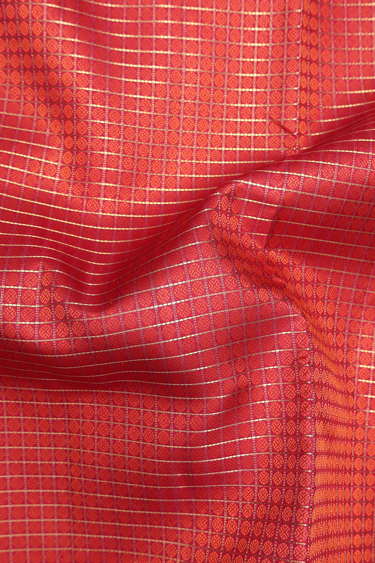 Nine Yards Silk Saree In Red With Checks Along Buttas
