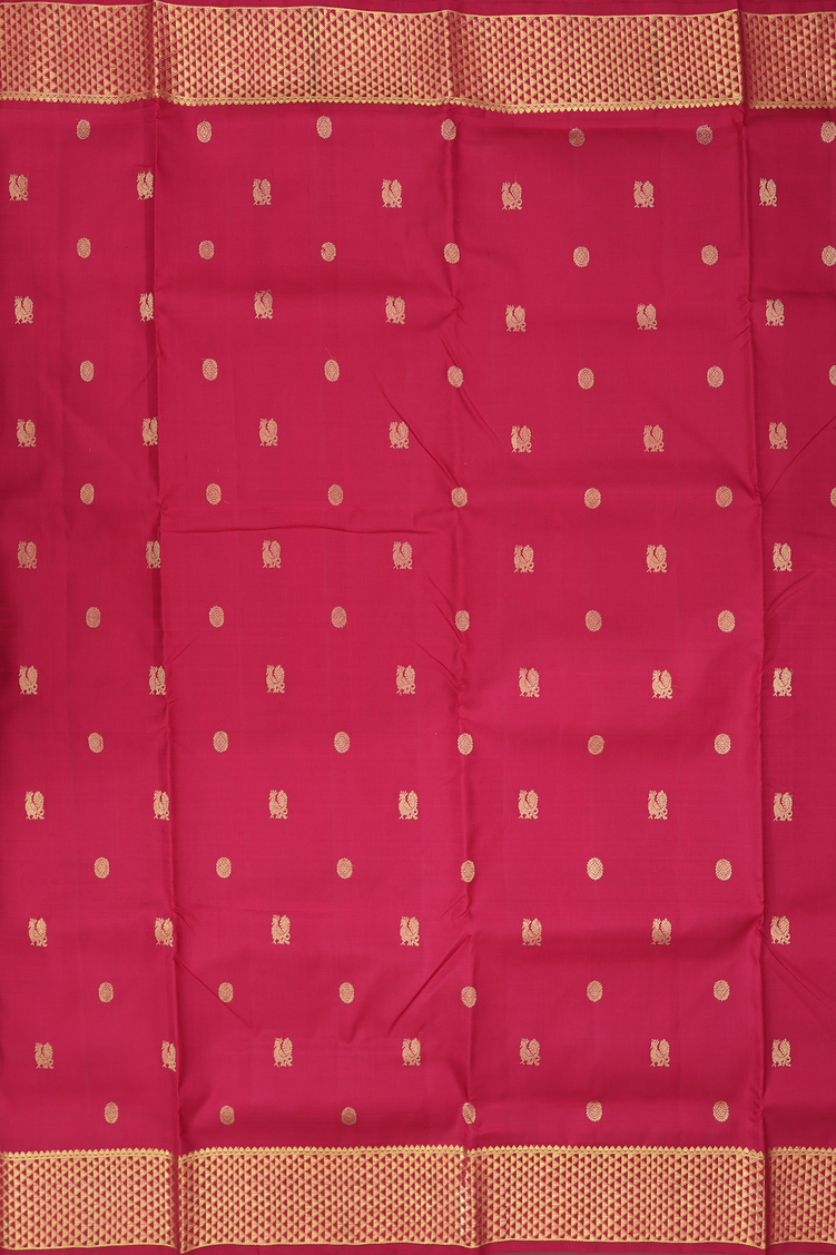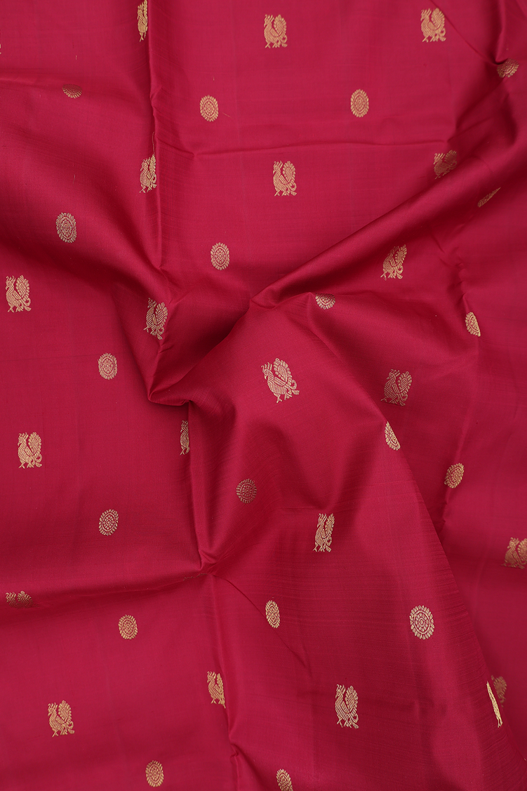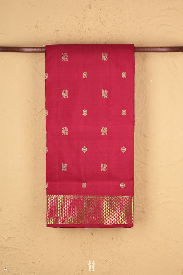 Nine Yards Silk Saree In Red With Peacock Buttas