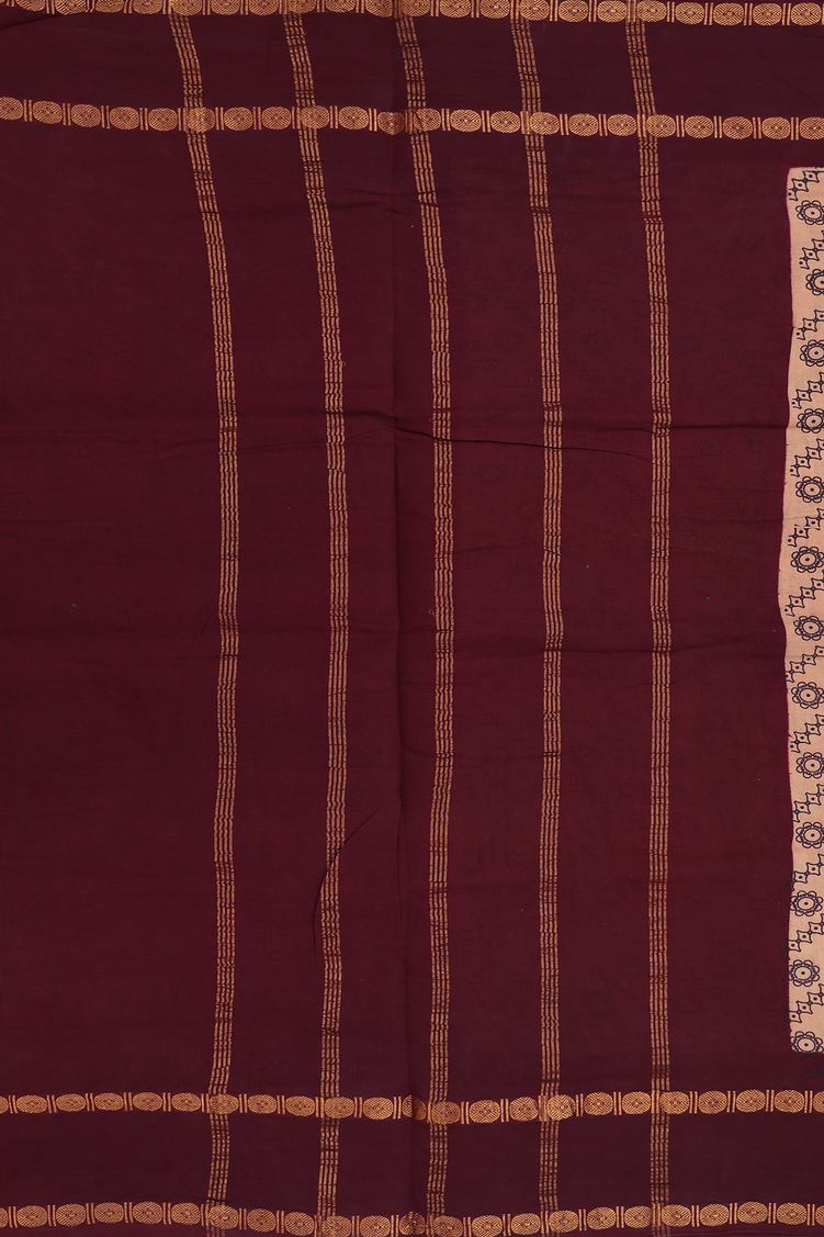 Nine Yards Sungudi Cotton Saree Brown With Diagonal Design