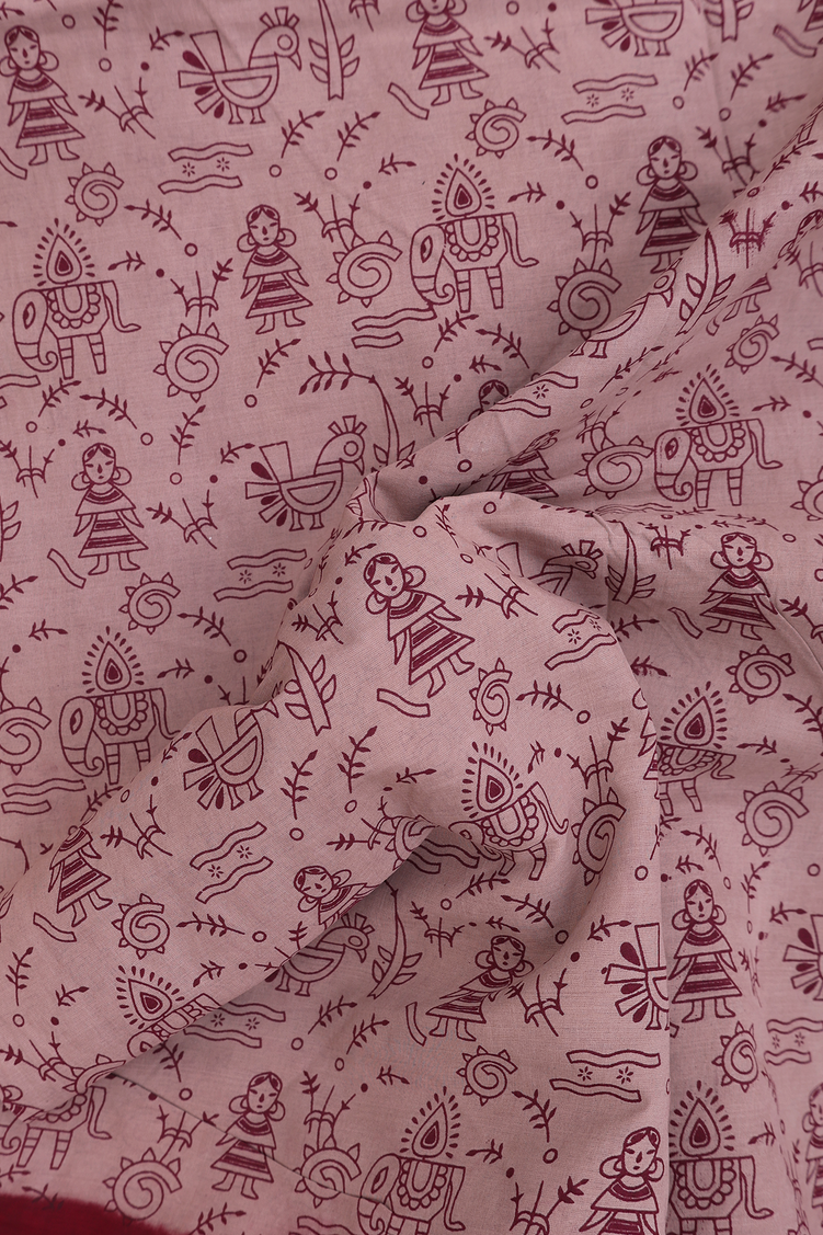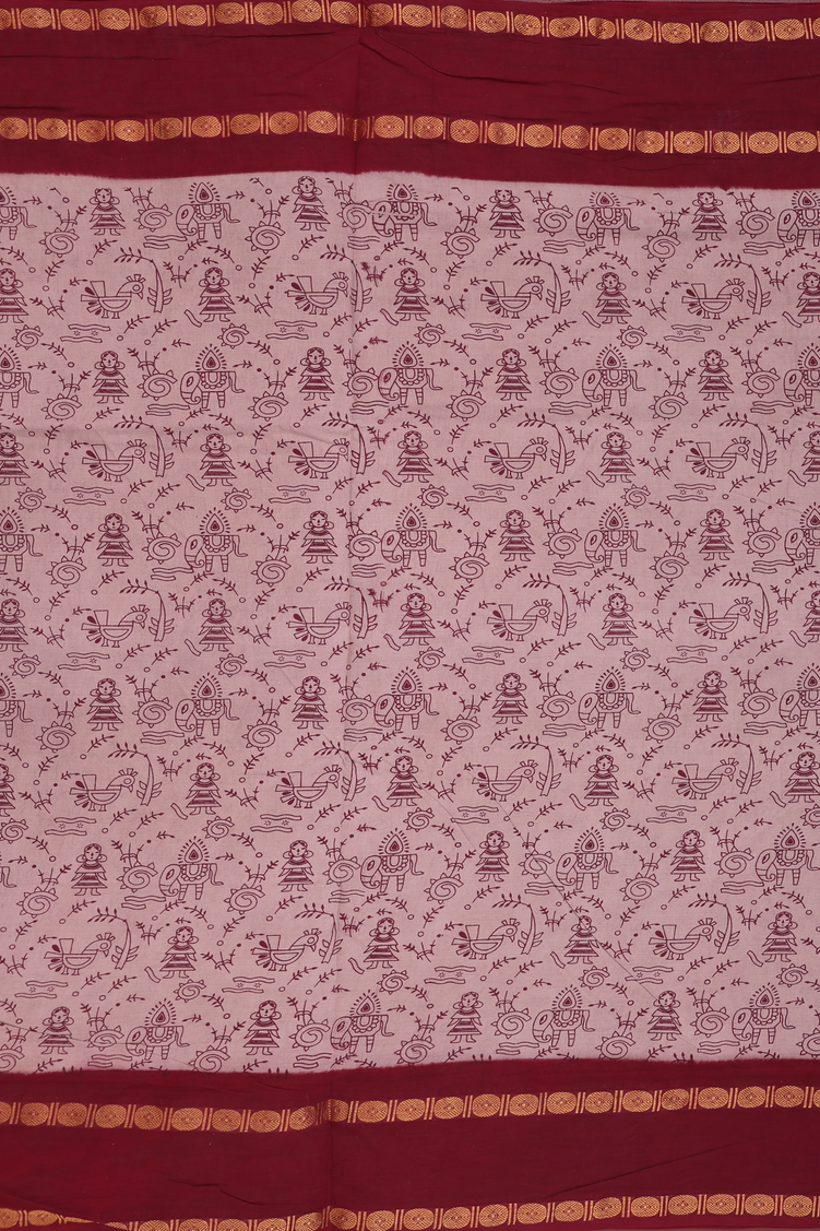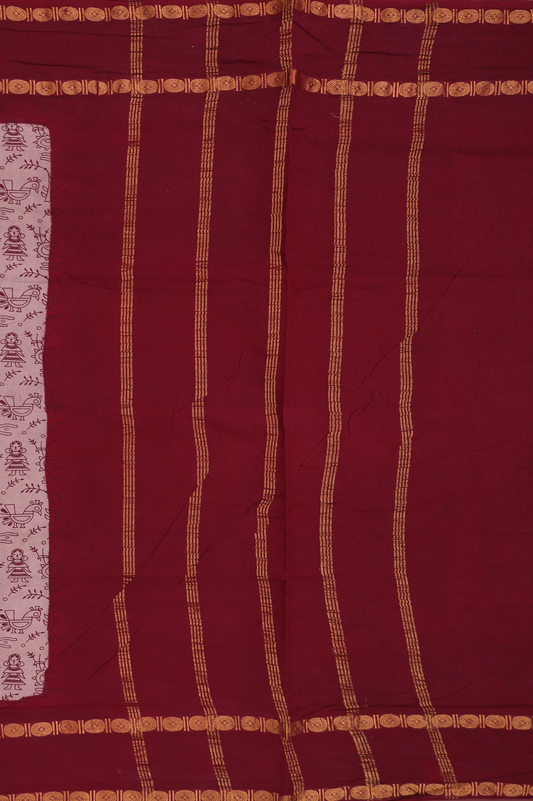 Nine Yards Sungudi Cotton Saree In Brown With Printed Design