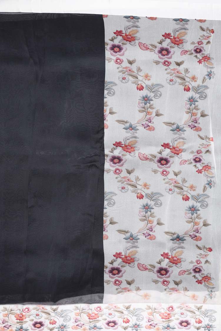 Organza Silk Saree In Black With Floral Border