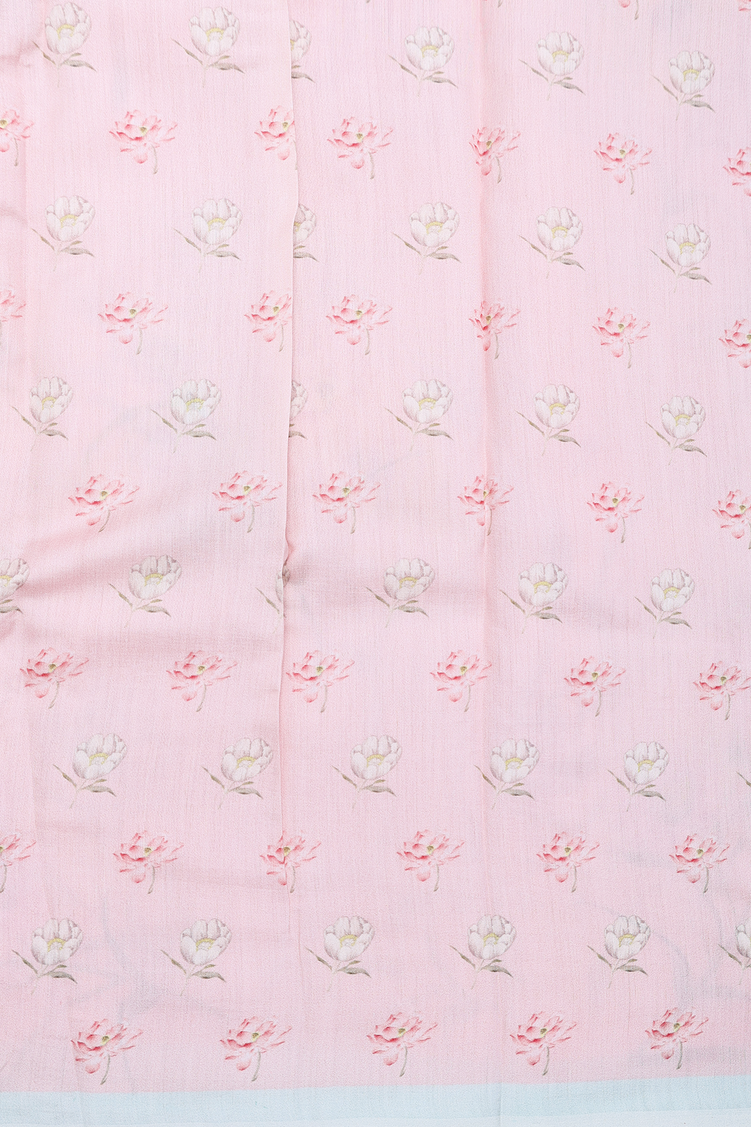 Organza Silk Saree In Dusty Pink With Floral Design