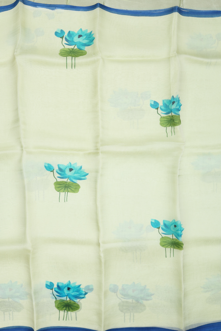 Organza Silk Saree In Pastel Green With Floral Printed Design