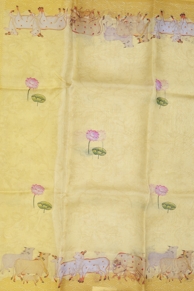Embrace elegance with this yellow organza silk Saree, adorned with delicate floral designs that enhance its timeless charm. Lightweight and sheer, the fabric offers graceful drape and subtle sheen, perfect for both festive occasions and formal gatherings. This saree blends classic artistry with contemporary style, making it a refined choice for discerning tastes.