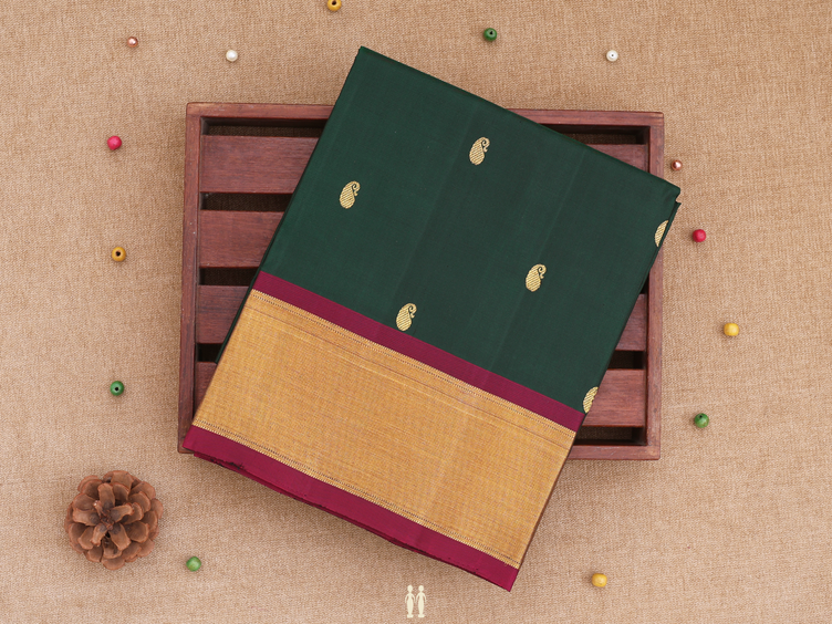 Paisley Buttas Dark Green Kanchipuram Pavadai Sattai Material