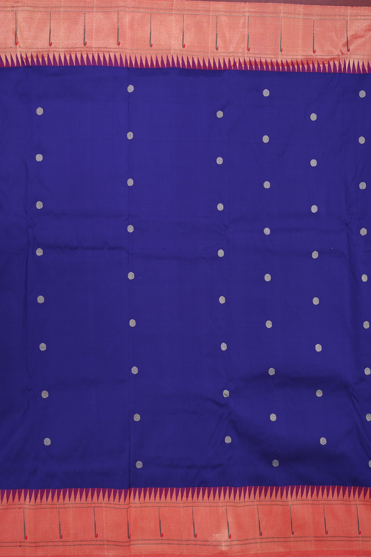 Paithani Silk Saree In Royal Blue With Zari Buttas