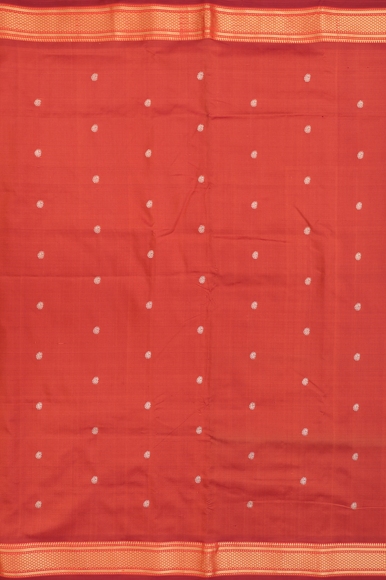 Paithani Silk Saree In Rust Orange With Paisley Buttis