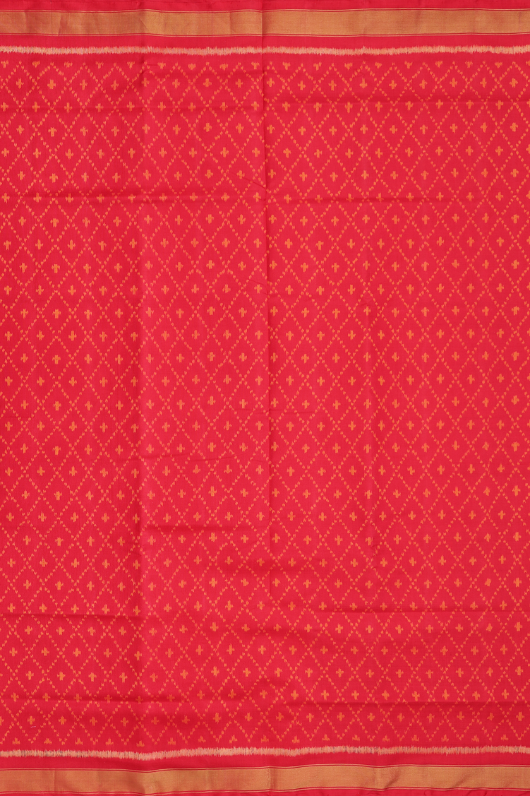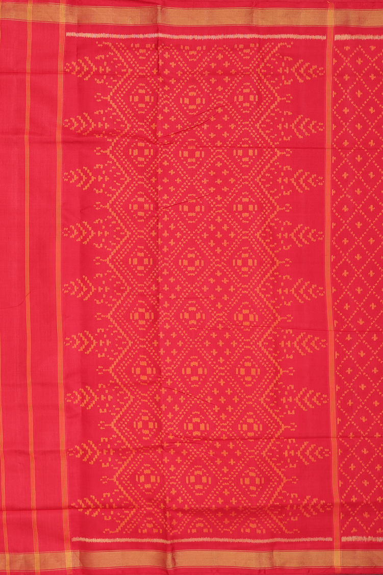 Elevate your elegance with this patola silk saree in a rich chilli red shade, featuring an intricate diamond pattern that showcases exquisite craftsmanship. The luxurious silk fabric offers a smooth drape, making it perfect for special occasions. Embrace timeless tradition with a contemporary flair through this sophisticated, statement-making saree.