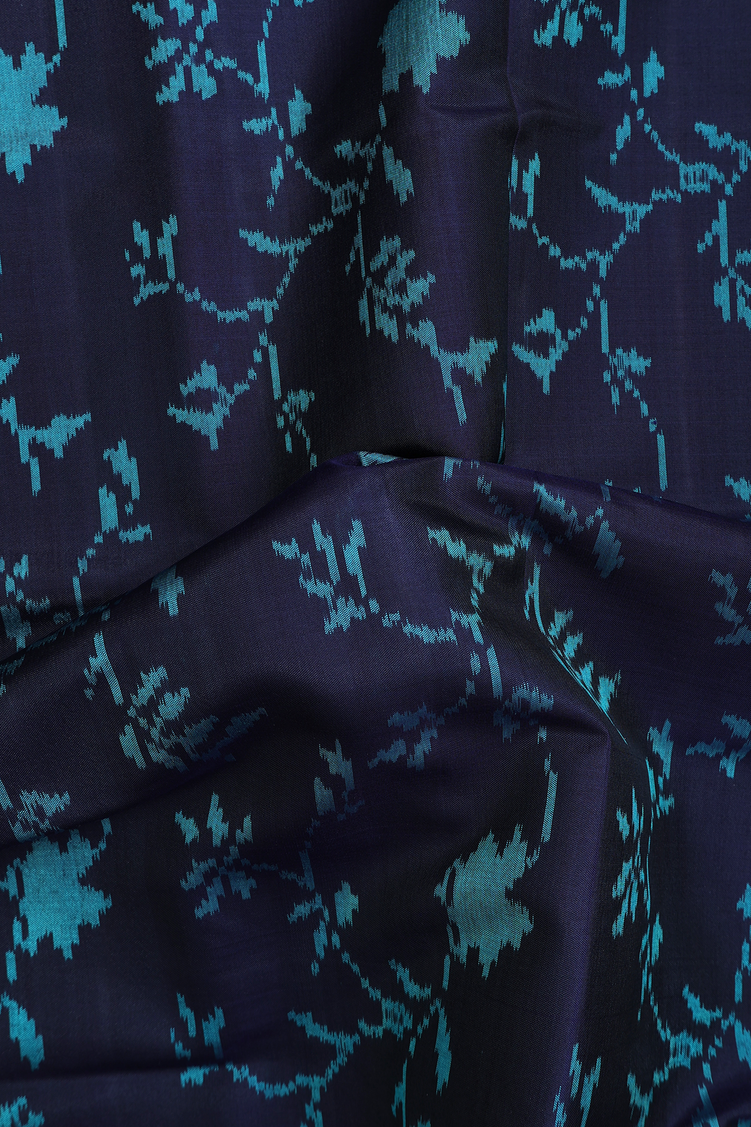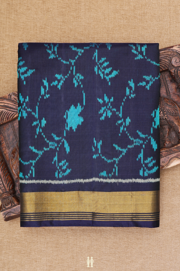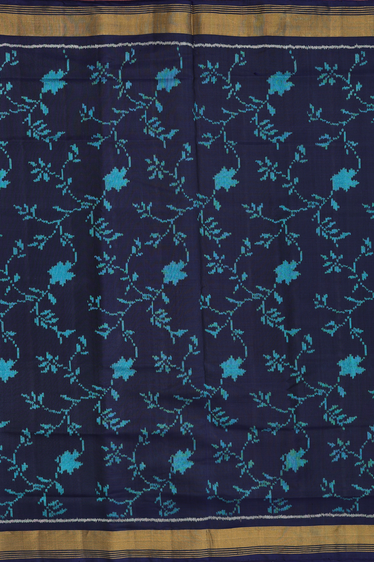 Patola Silk Saree In Navy Blue With Floral Design