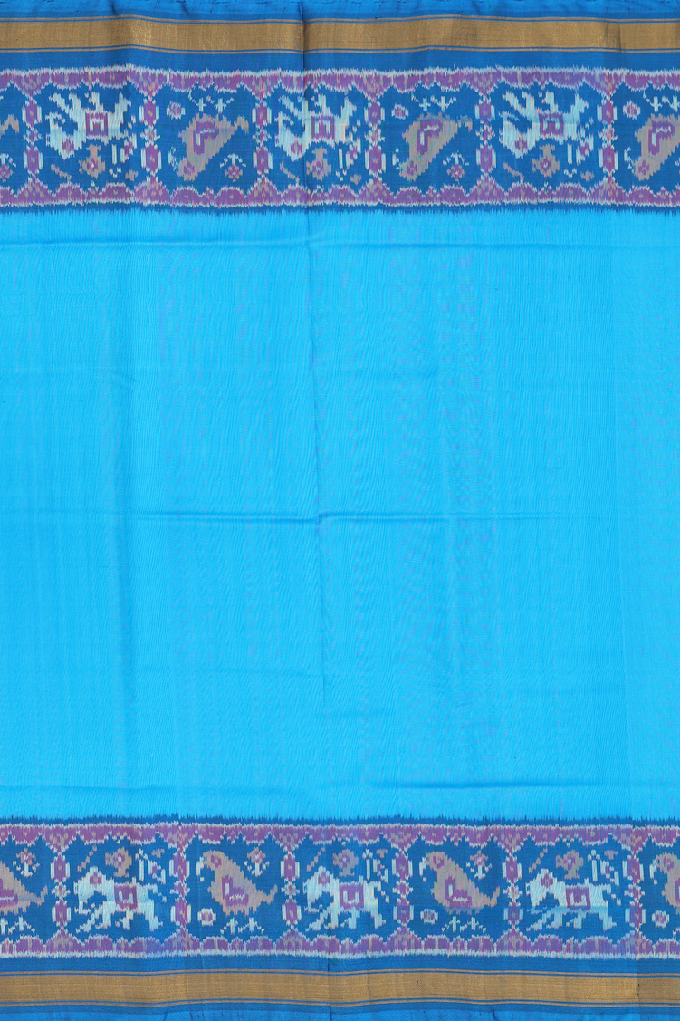 Patola Silk Saree In Plain Deep Sky Blue With Printed Border