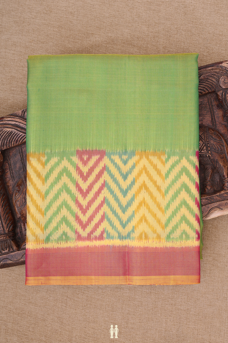 Elevate your ethnic wardrobe with this exquisite patola silk saree, a timeless piece that seamlessly blends tradition with refined elegance. Crafted from luxurious silk, the saree features a serene plain green base that exudes understated sophistication, beautifully complemented by a striking contrast border that adds visual depth and dimension. The Patola weaving technique ensures exceptional durability and a lustrous finish that catches light gracefully. Perfect for festive occasions, celebrations, or formal gatherings, this saree drapes beautifully and offers the comfort of premium silk fabric. An investment piece that transcends seasons and trends, ideal for the