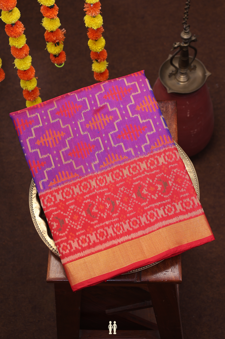 Elevate your elegance with this exquisite patola silk saree in a rich purple hue. Featuring a meticulously crafted allover design, this saree showcases timeless artistry and intricate patterns that highlight traditional craftsmanship. The luxurious silk fabric offers a graceful drape, perfect for formal occasions and special celebrations where sophistication is paramount. This piece blends cultural heritage with refined style, making it a distinguished addition to your collection.