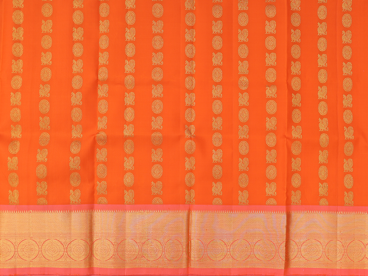 Peacock Buttas Orange Kanchipuram Pavadai Sattai Material