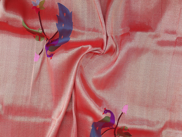 Peacock Design Red Paithani Silk Blouse Material