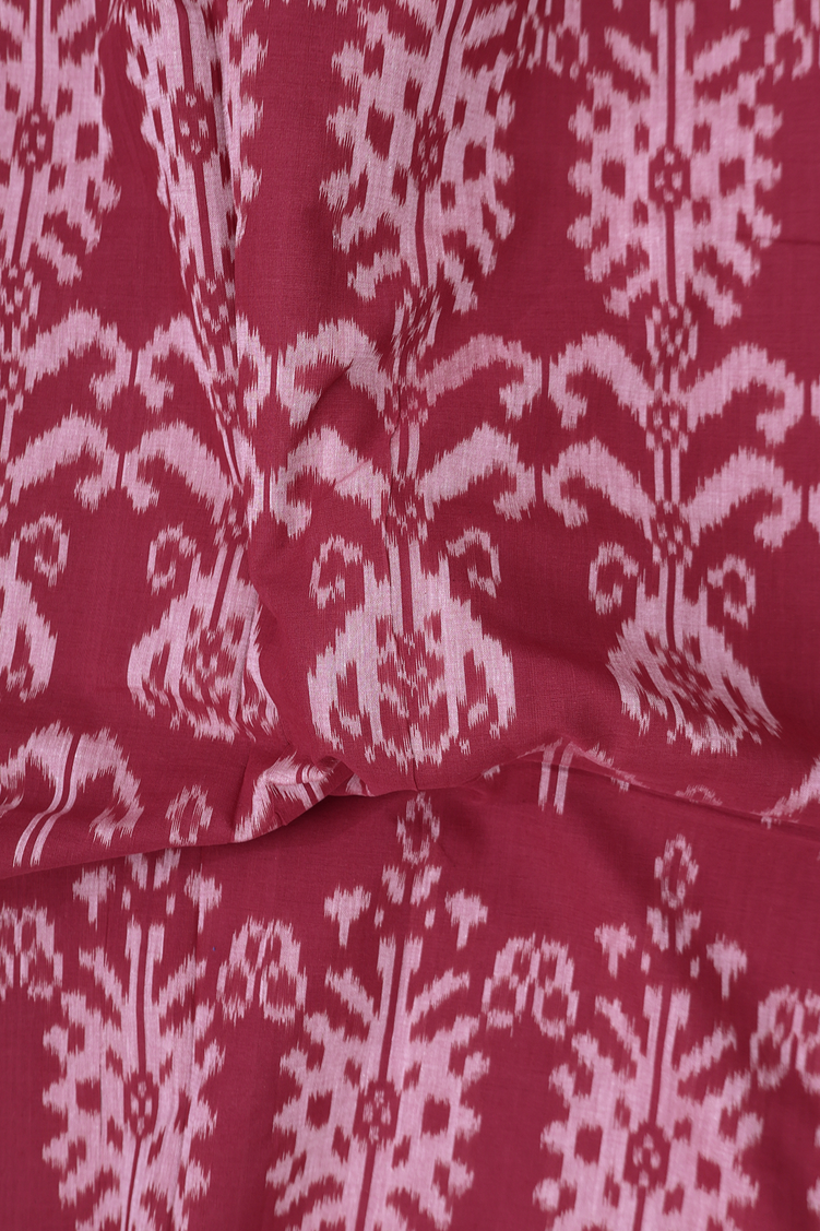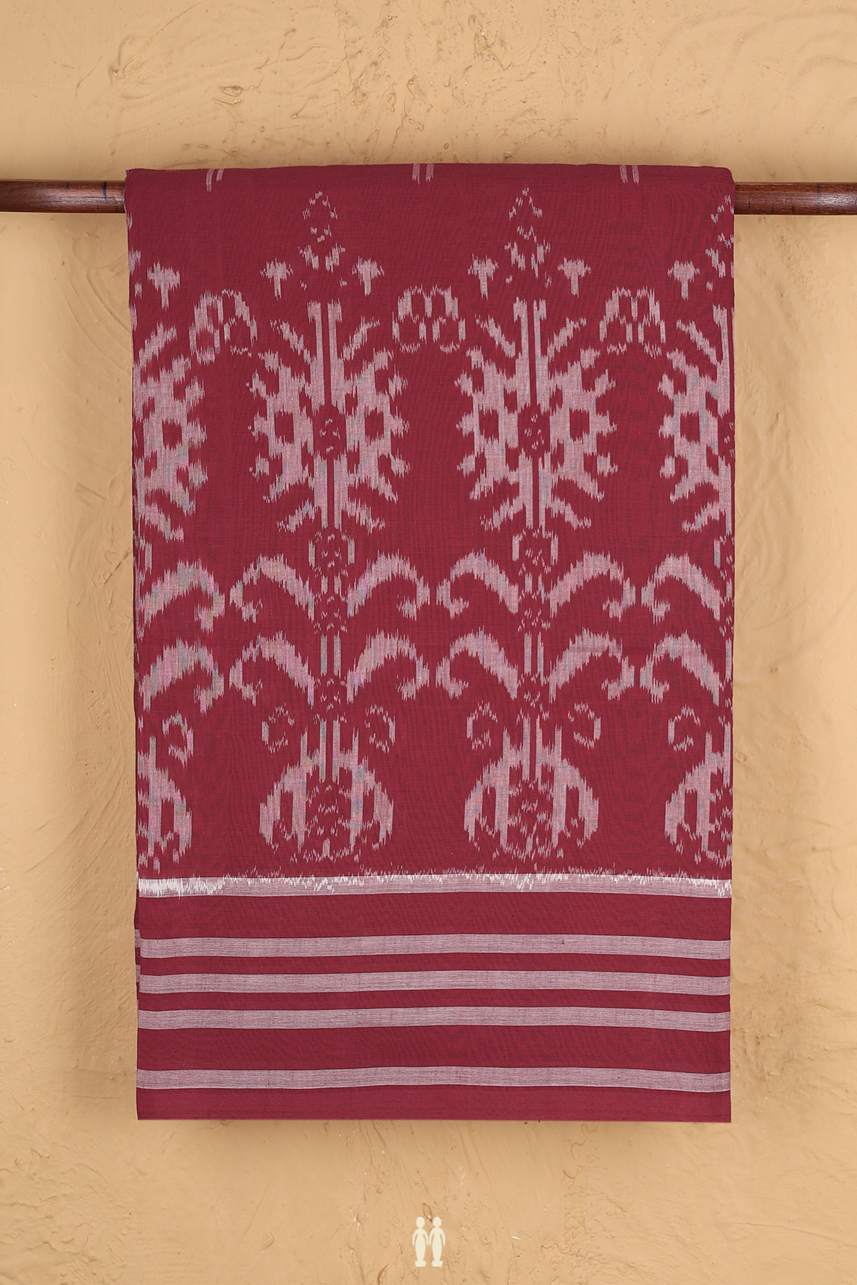 Pochampally Cotton Saree In Burgundy Red With Printed Design