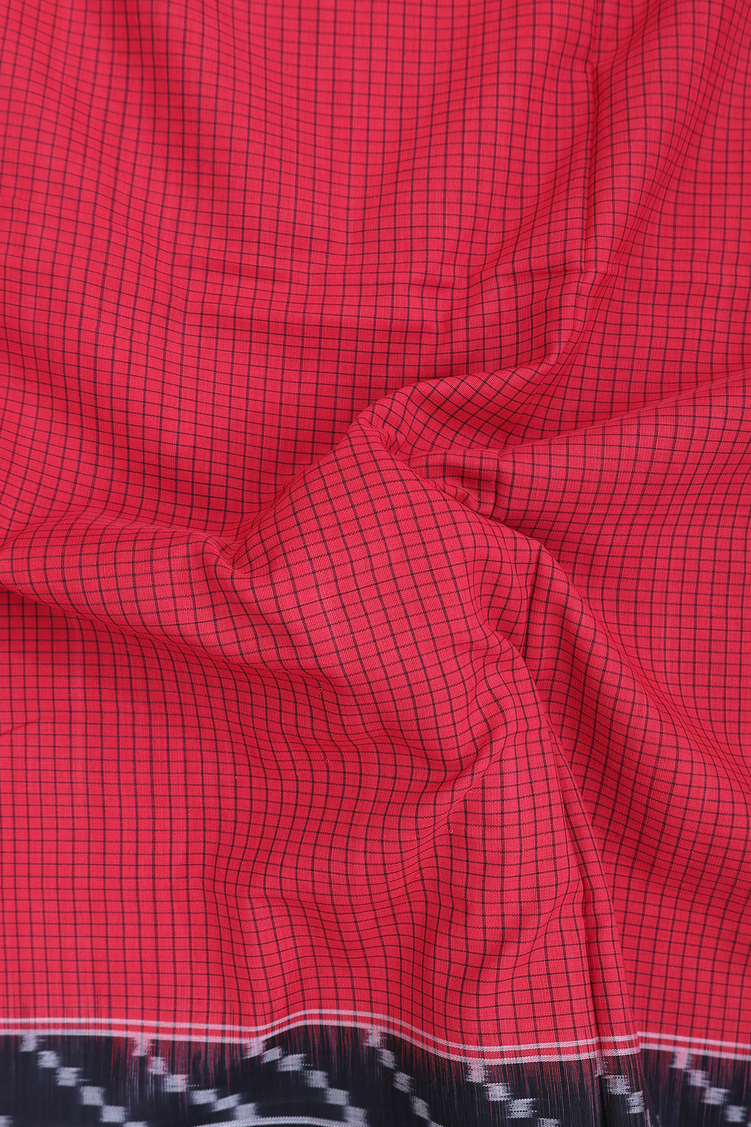 Pochampally Cotton Saree In Crimson Red With Checks Design