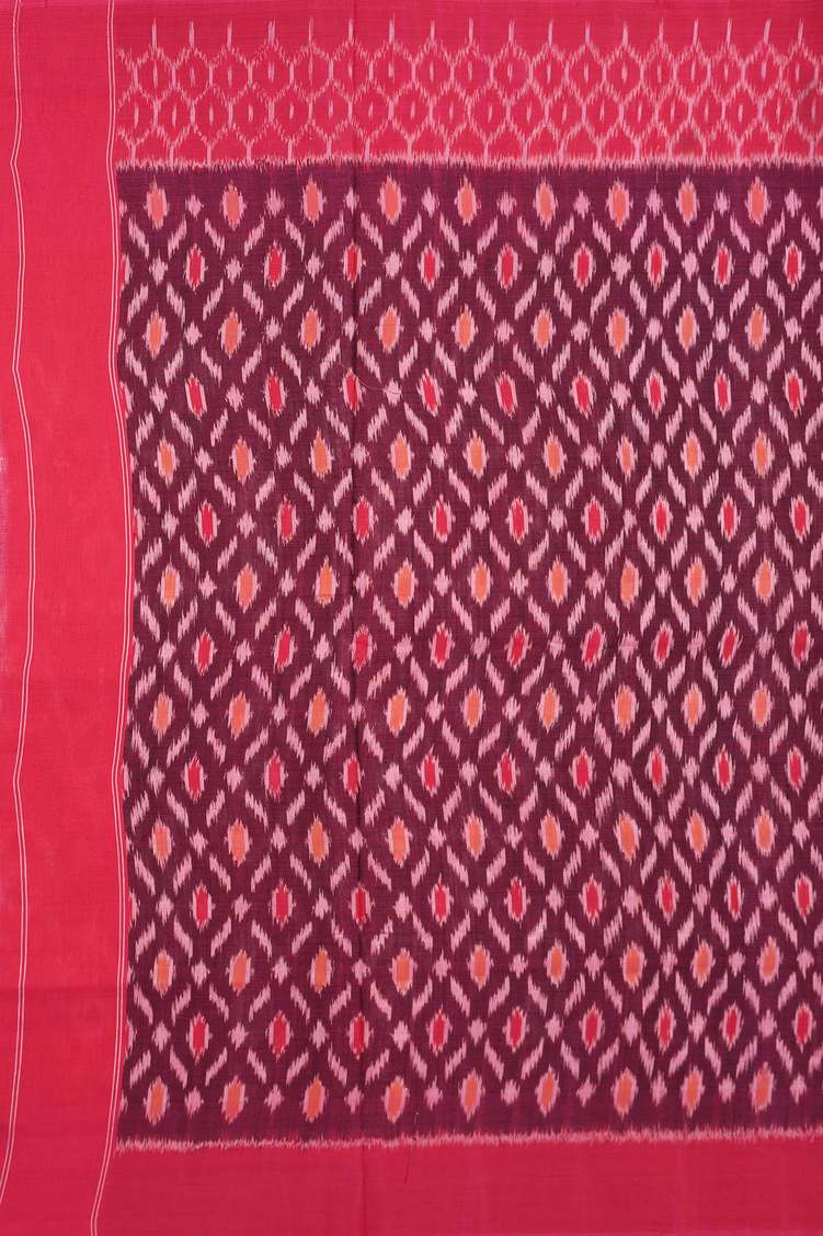 Pochampally Cotton Saree In Dusty Red With Printed Design