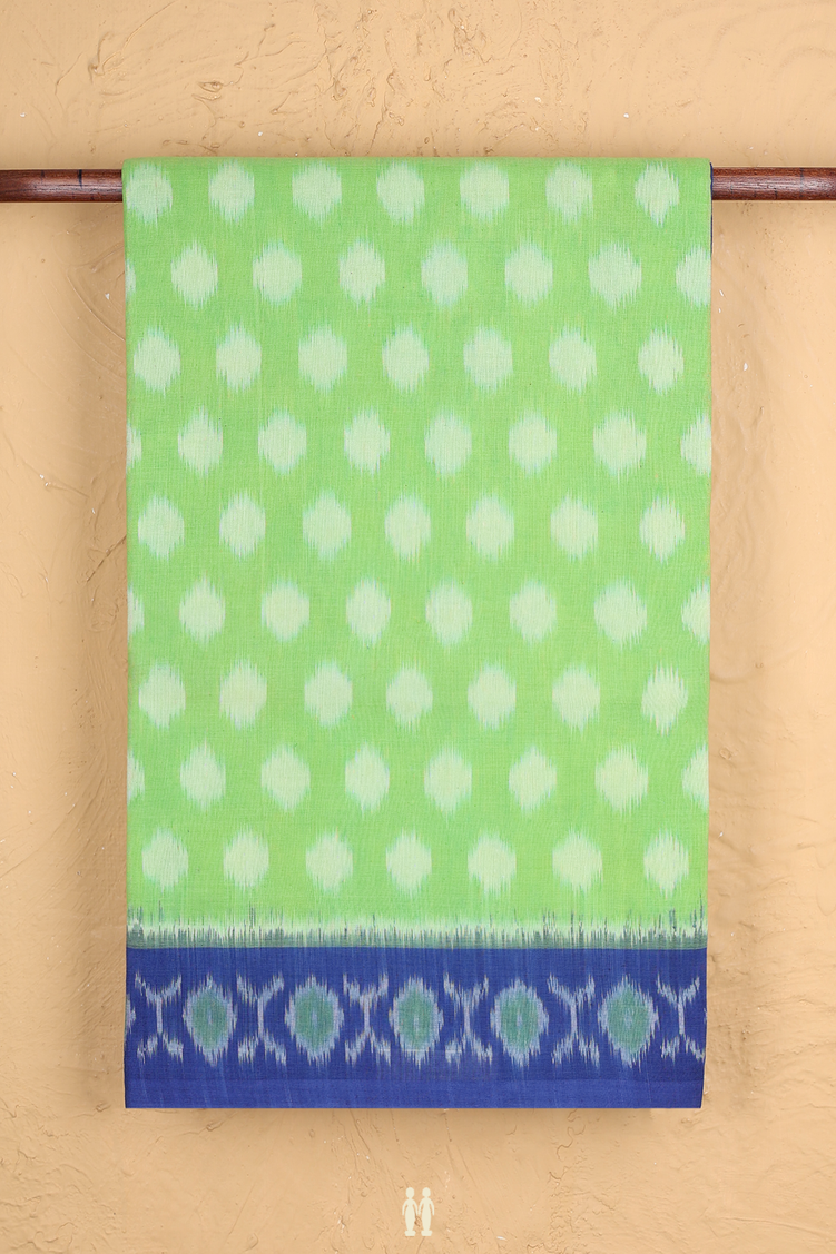 Pochampally Cotton Saree In Green With Printed Buttas