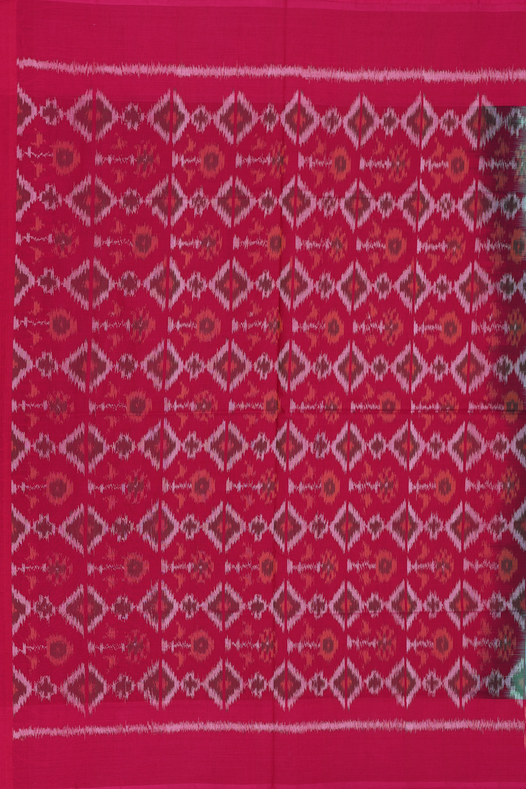 Discover the refined charm of this pochampally cotton saree in serene green, adorned with carefully curated printed designs. Rooted in Telangana's celebrated weaving tradition, this saree features the distinctive geometric patterns characteristic of Pochampally craftsmanship. The lightweight cotton fabric offers exceptional comfort and graceful draping, making it versatile for both formal gatherings and refined casual occasions. A sophisticated choice for those who value heritage