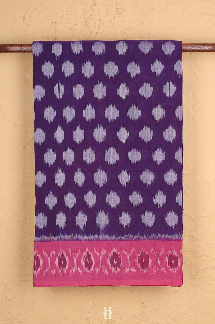 Pochampally Cotton Saree In Purple With Printed Buttas