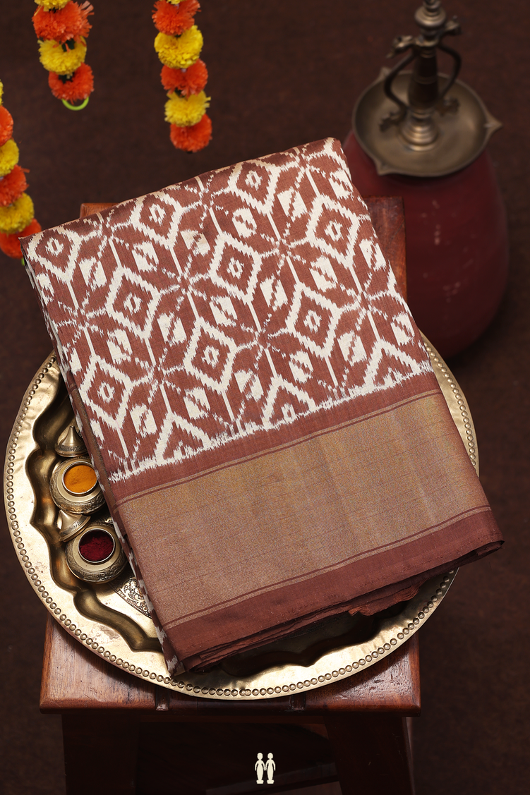 Pochampally Silk Saree In Brown With Printed Design