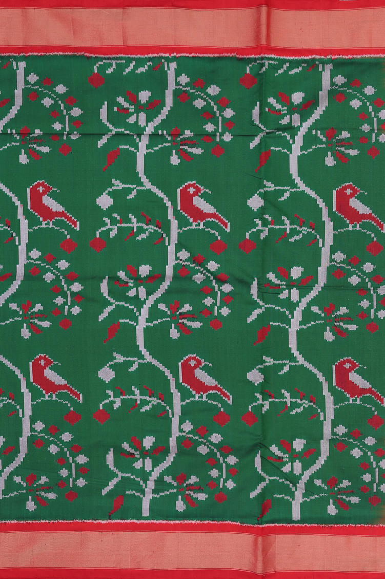 Pochampally Silk Saree In Dark Green With Birds Design