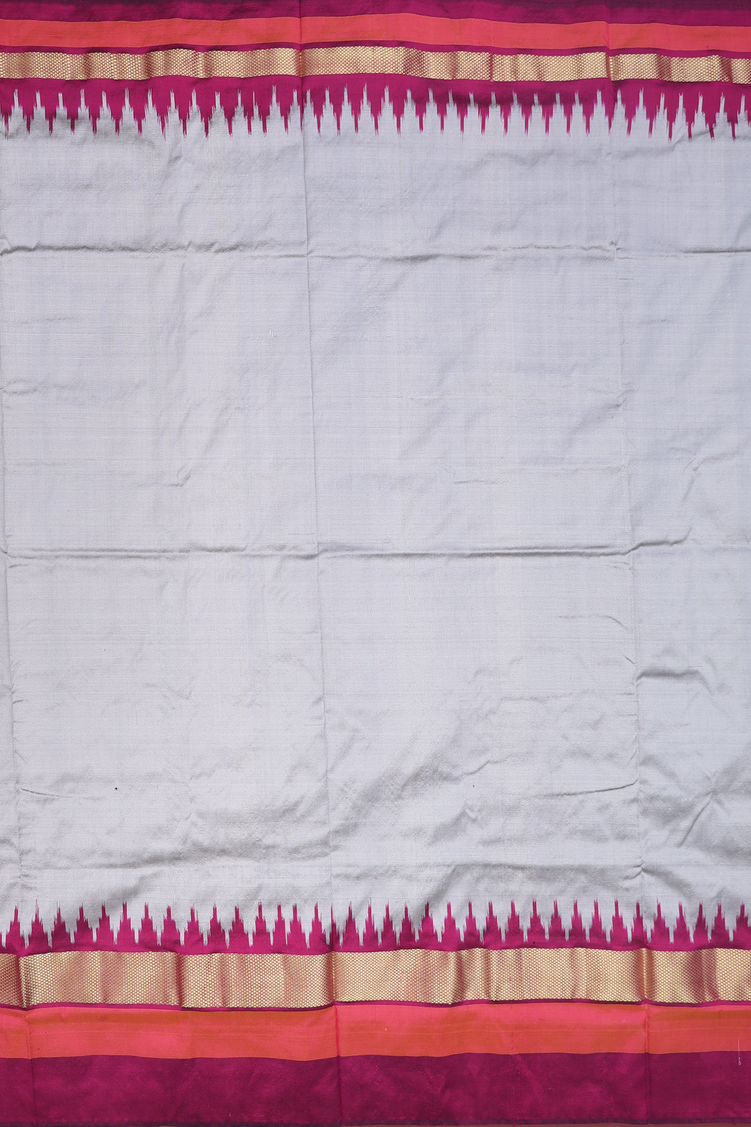 Pochampally Silk Saree In Plain Grey With Contrast Border